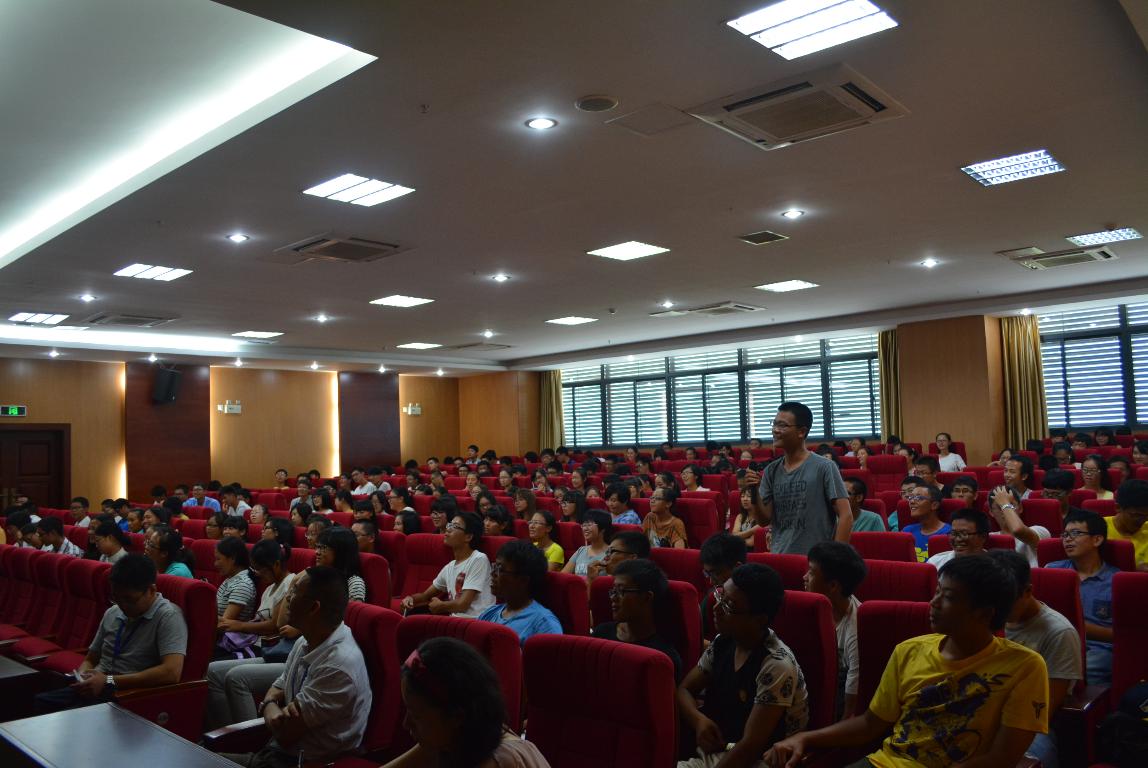 9月13日下午3时,学院为2014级本科新生专门举办的“院长面对面”活动在学院5楼学术报告厅举行。院长林圣彩老师、党委书记陈光老师、副院长宋思扬老师、李博安老师、欧阳高亮老师、周大旺老师、党委副书记左正宏老师、14级各班新生班主任、院办主任谢忠老师以及学院全体辅导员参加了本次活动。活动由新生辅导员徐小伟主持。