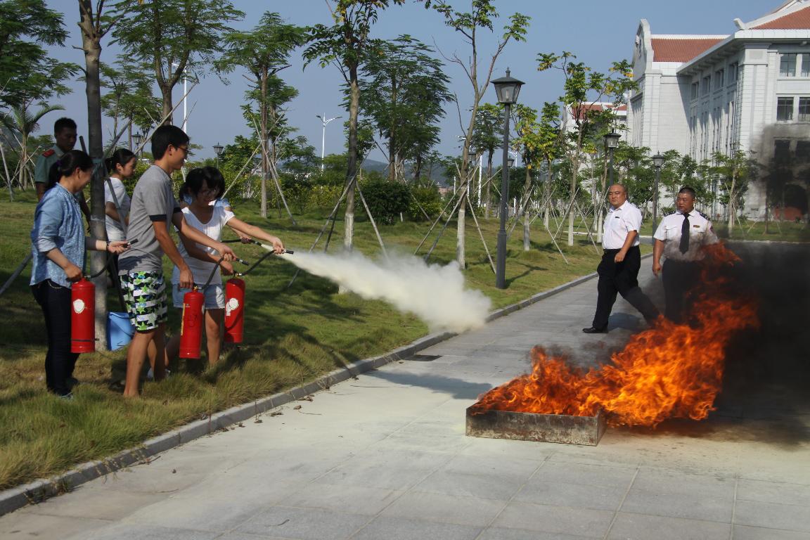 在安全会上,宋思扬副院长首先为新生们详细介绍了实验室安全注意事项,并强调指出实验室中容易发生安全事故的种类和原因。随后,由学院邀请的消防大队廖参谋为新生做消防安全知识培训,其中一段关于广州某大厦失火案件的现场拍摄视频把新生的情绪推向高潮;最后,新生在消防大队专业消防队员的演示下,在学院大楼室外进行了灭火器灭火演习,同学们掌握了灭火器的使用技巧。