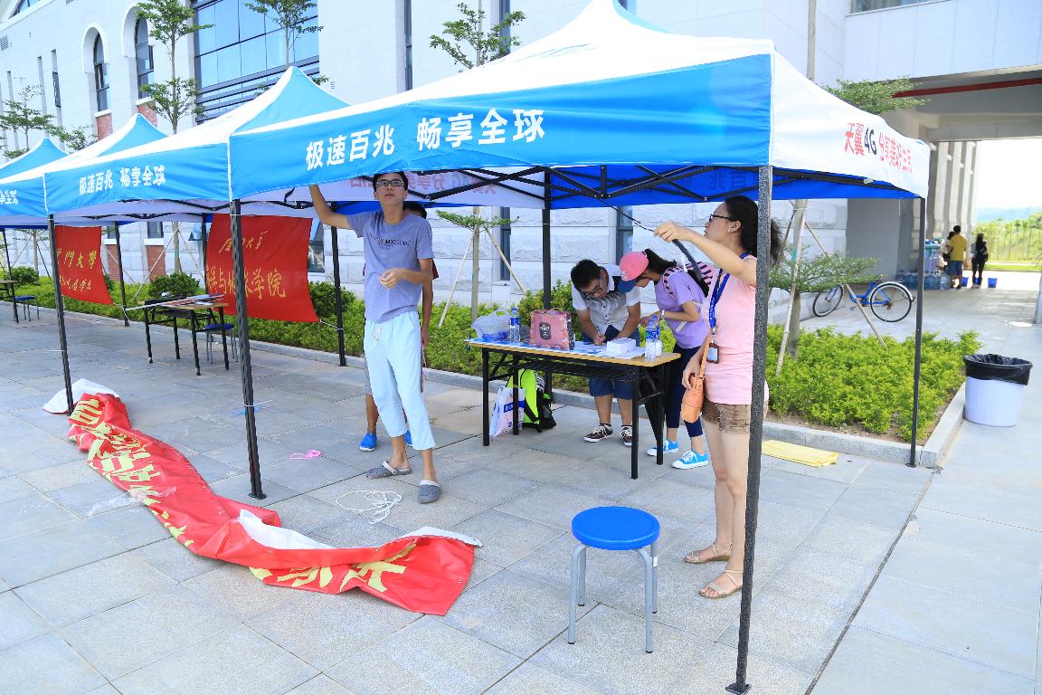 8月22日下午,学院迎新志愿者在位于学生活动中心的新生引导点、注册点完成了最后的布置工作。