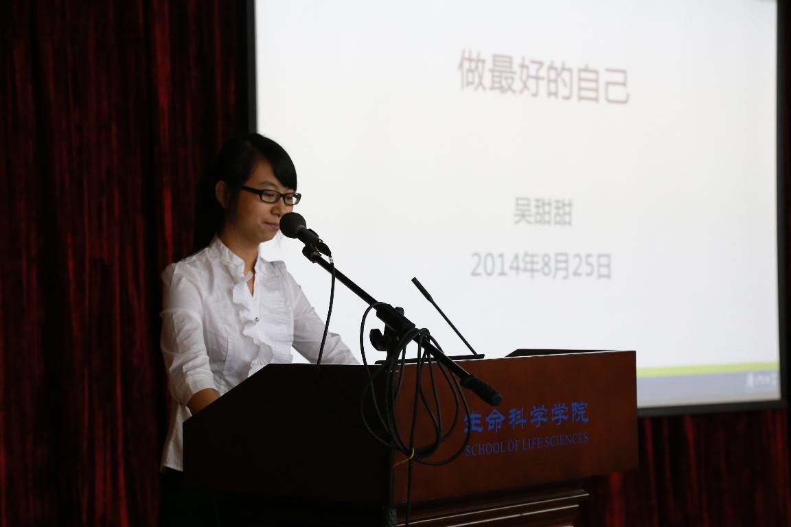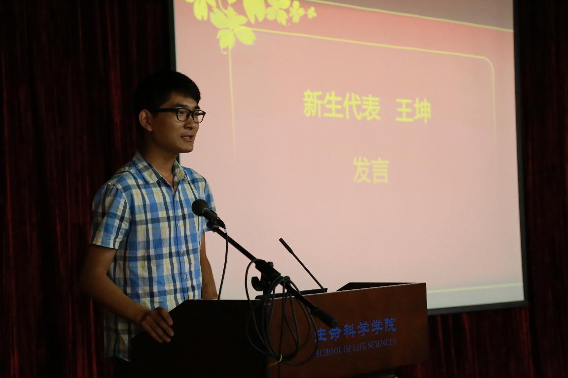 老生代表2014级硕士研究生吴同学以“做最好的自己”为题与学弟学妹们分享了从大学本科进入厦门大学生科院至今不断成长成才的经验,激励新生们珍惜眼前时光,多尝试,多付出,努力做到最好的自己。最后14级本科生王琨同学作为新生代表发言,感谢学院老师和学长学姐迎新这几天的热情接待,表达了对大学生活的憧憬以及对未来的信心。