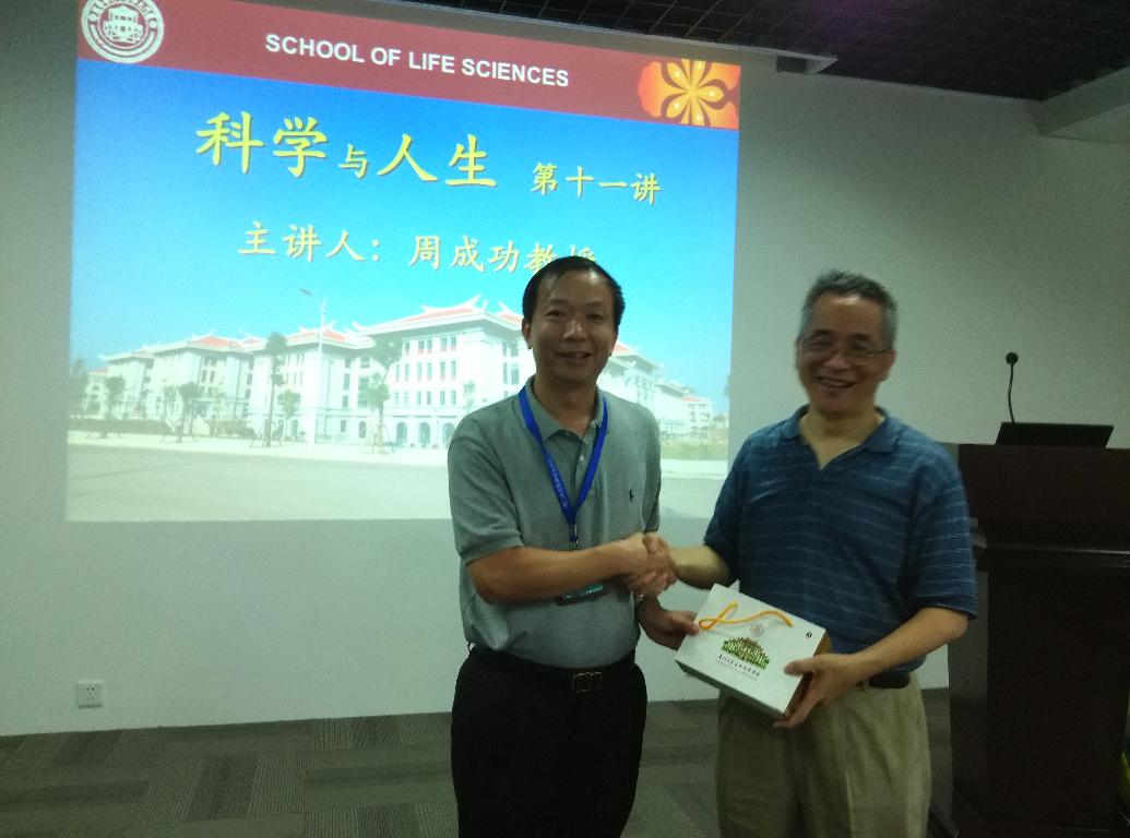 8月26日上午10点,原台湾长庚大学生命科学系周成功教授为新学期我院科学与人生系列讲座开讲。院党委书记陈光老师与到场80多位本科生、研究生聆听了周老师的讲座。