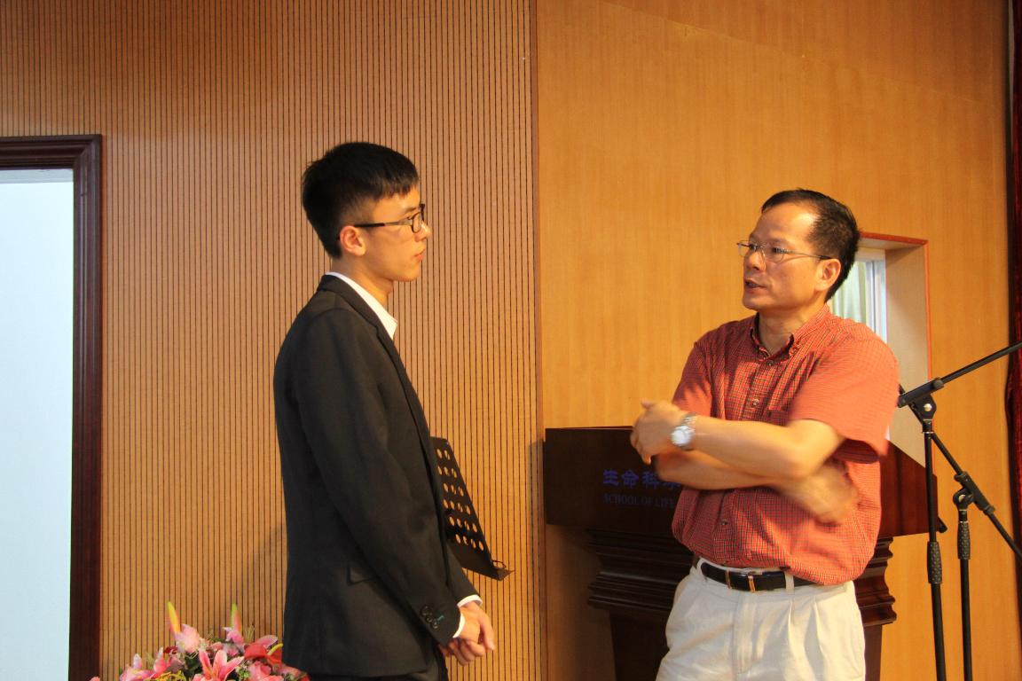 俞春东老师更是为大家展现了其深厚的诗歌风采,将其文学上的深厚底蕴展现的淋漓尽致,这更是说明,厦门大学生命科学学院的老师不仅科研实力强,文学素养也毫不逊色,令现场同学敬佩不已。联谊会中,还穿插着抽奖环节,有学院精心准备的各种小礼物,充分活跃了现场的气氛,也显示了学院对于此次夏令营活动的重视。