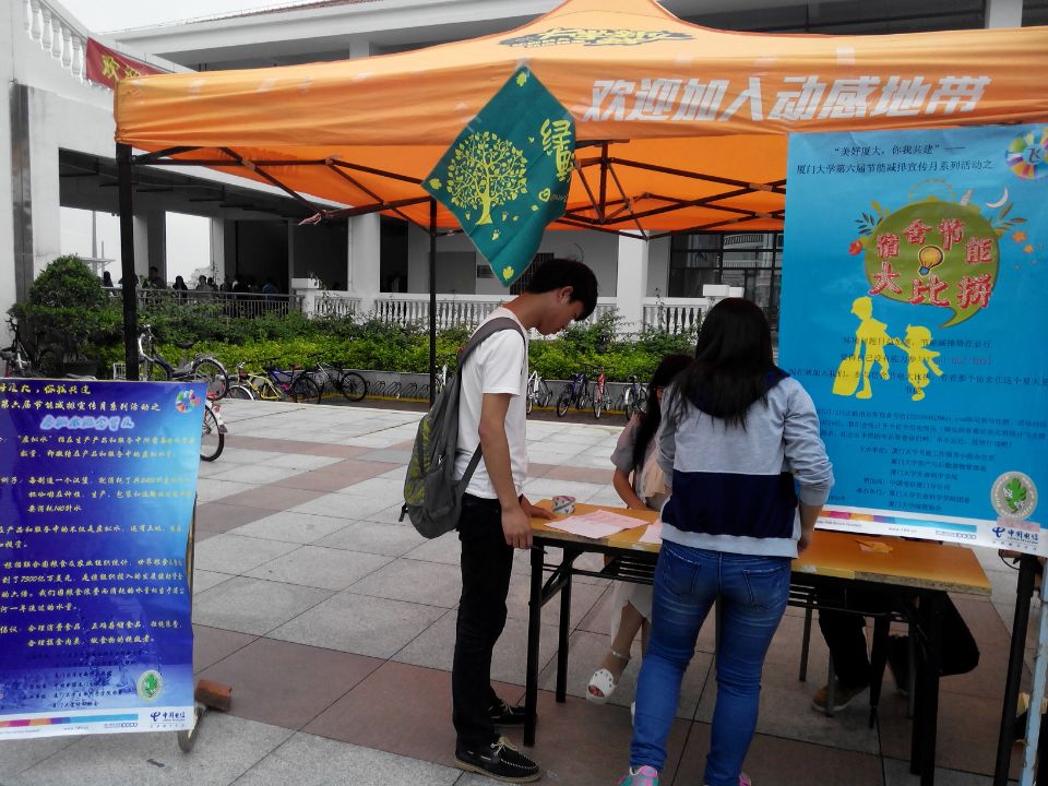 2014年6月8至14日是全国第24届节能宣传周,今年宣传周的主题为“携手节能低碳,共建碧水蓝天”。为积极响应全国节能宣传周号召,由校节能减排领导小组办公室、校资产与后勤事务管理处与我院牵头主办,我院团委和绿野协会共同承办的厦门大学第六届“节能减排”宣传活动月自5月中旬开始在两个校区同步启动,陆续开展了包括宿舍节能比赛、节能减排海报与logo设计竞赛、垃圾分类与处理知识普及、“虚拟水”概念推广以及办公室“绿色征集令”等活动。