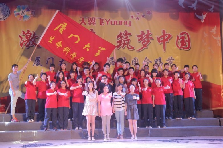 2014年5月,由共青团厦门大学委员会主办,厦门大学学生艺术团承办的“激扬青春,筑梦中国”厦门大学第二届校园合唱节激情上演,生命科学学院合唱团分别在翔安校区和建南大礼堂为全校师生带来《四渡赤水出奇兵》和《龙的传人》两首合唱曲目。