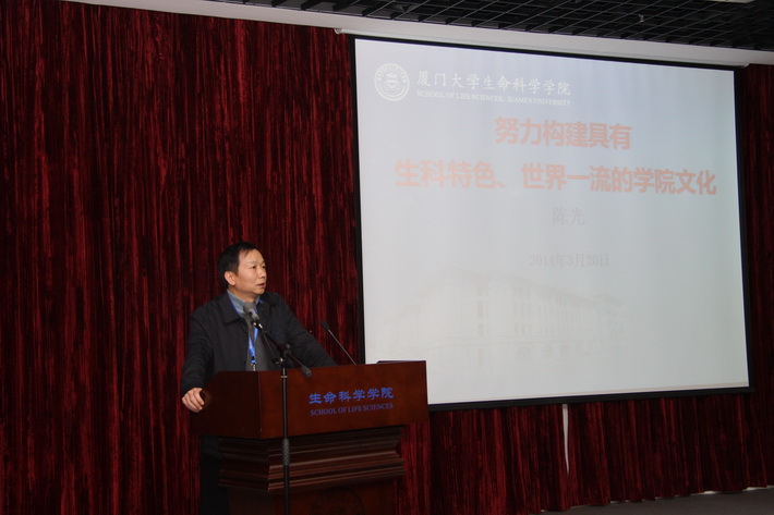 最后,学院党委书记陈光作总结讲话。他以《努力构建具有生科特色、世界一流的学院文化》为题,阐明了学院“两个一百年”奋斗目标的内涵,通过翔实的数据比对,分析了与世界一流大学生命科学学院的差距,并从文化层面入手,强调了学院历史文化的传承和办学理念的创新对于实现学院“两个一百年”奋斗目标的重要意义。围绕如何实现学院“两个一百年”奋斗目标,分享了自己在人才培养、师生关系、学生就业、团队精神和公共服务意识等方面的思考。他希望大家多思考,提高站位,同心同德、互信互助、开放包容,多一点对学生的关怀,多一点对身边人和事的关心,共同建设和弘扬具有生科特色、世界一流的生科文化,努力朝着建成世界一流高水平研究型学院的目标迈进!