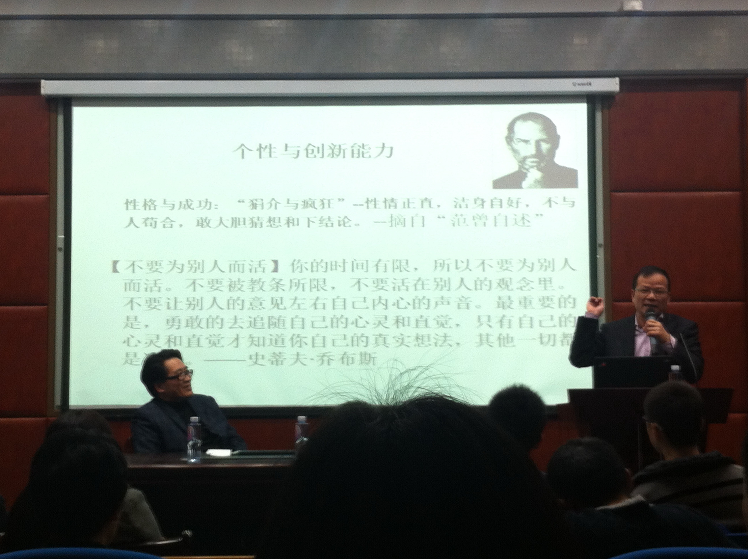 何为创新?何为规律?是什么精神让科学家们在探索科学前沿的道路上义无反顾?林院长以独到的见解传递着他的人生理念,以全新的视角来启发听众反思自己,反思社会现象,反思身边已“被认可”的“新”观念。在问答讨论环节,两位院长就中国的教育、英语学习、尊重个性发展等问题进行了睿智、幽默的解答。最后在大家经久不息的掌声中结束了这短短的两节课,相信这次文化与观念的激烈碰撞和冲击会久久在人们心中回荡,并发酵、酝酿出更闪光更宝贵更深厚的厦大文化。
