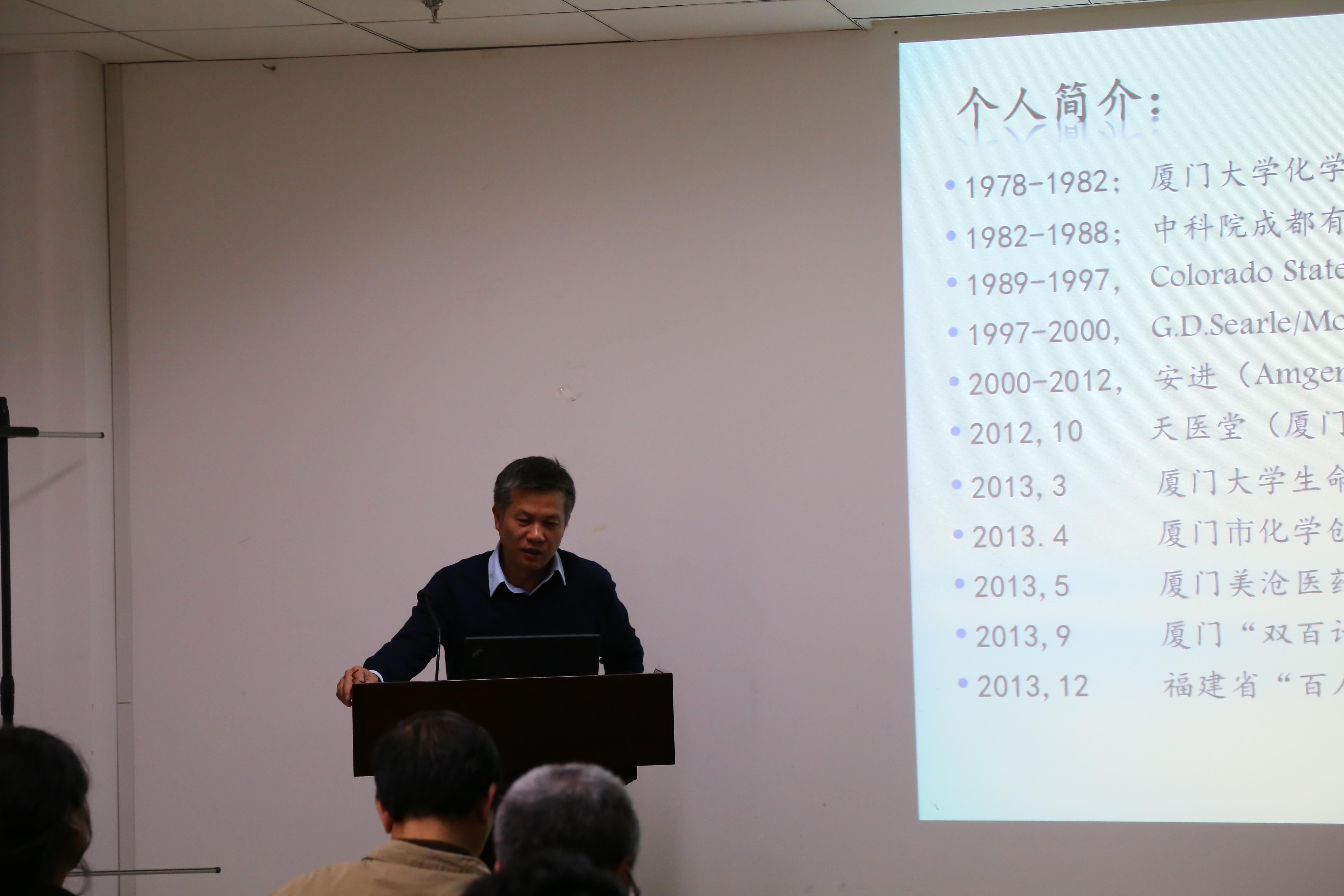 原晨光首先介绍了个人的学习和工作经历,内容十分丰富,囊括了其从厦大毕业之后参加工作,在美攻读博士学位并参加工作,直至现在回国创办企业的整个历程。在他的演讲中,他从比较宽广的视角分析了整个生物医药行业在美国和中国的发展情况,他认为,我们国家已经具备足够的能力和条件开展生物医药的研发和制作,认为现今的生命科学相关专业的同学应树立信心,打好基础。同时,结合自身的工作经历,他着重向在座的各位展示了其在美工作的整体状况,包括参与医药项目研发的整个过程、企业项目运营的协调机制及在行业内的生活状况等内容。