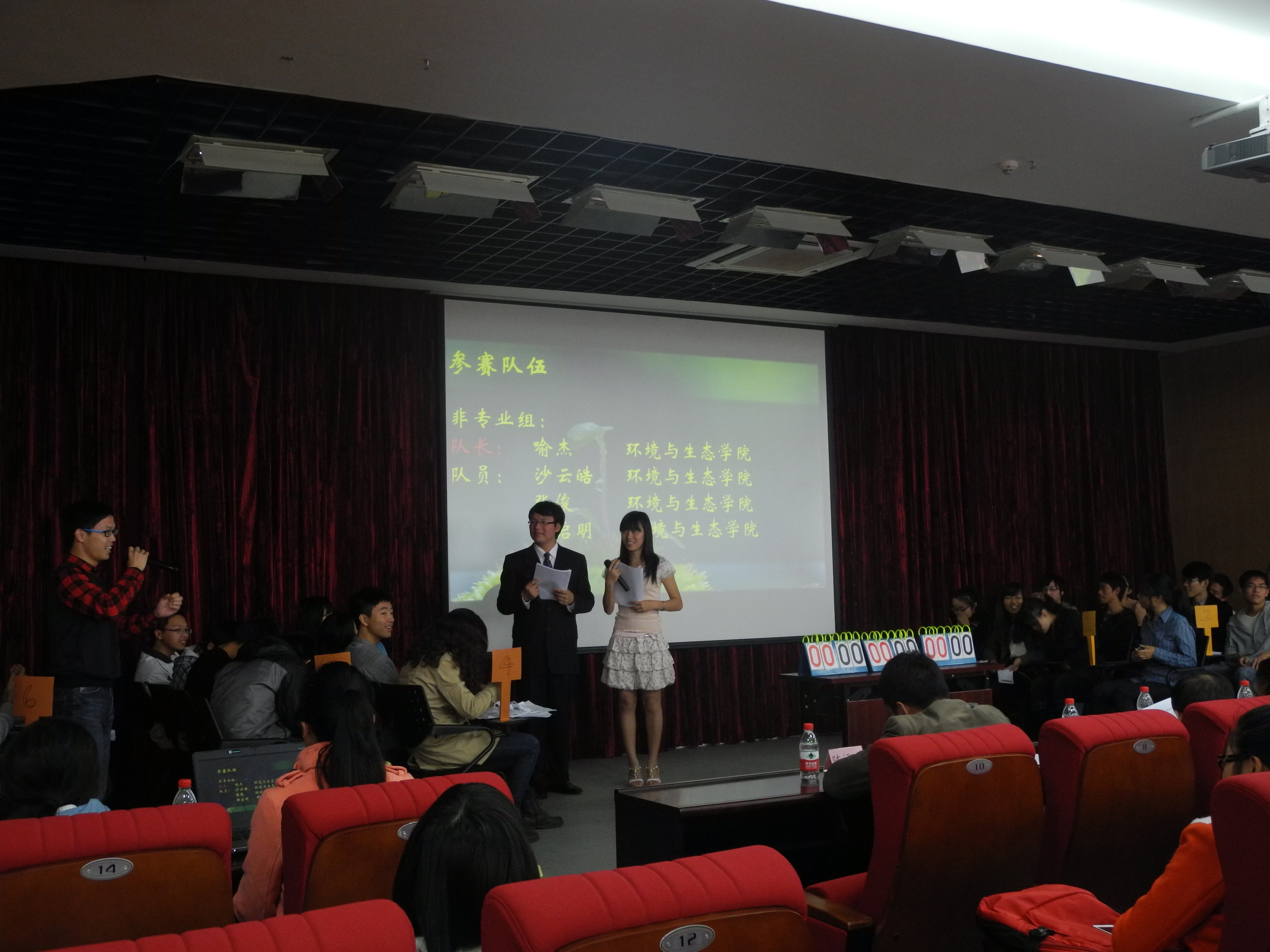 经过11月18日初赛的激烈角逐,最终有10名选手入围个人赛决赛,来自医学院、环境与生态学院、信息科学与技术学院等的三支队伍进入非专业组决赛,生命科学学院成绩最高的三支队伍进入专业组决赛。决赛中各参赛队伍发挥异常出色,经过3个环节以及加时赛,专业组中,“翱翔”队略胜一筹获得了专业组一等奖。非专业组中,信息科学与技术学院的“bio-up”队以明显的优势获得了非专业组一等奖。个人赛作为比赛的特色环节,借用江苏卫视“一站到底”节目的比赛模式,在经历了紧张的5轮比赛后,来自环境与生态学院的吕雷力冠群雄,获得个人赛一等奖。