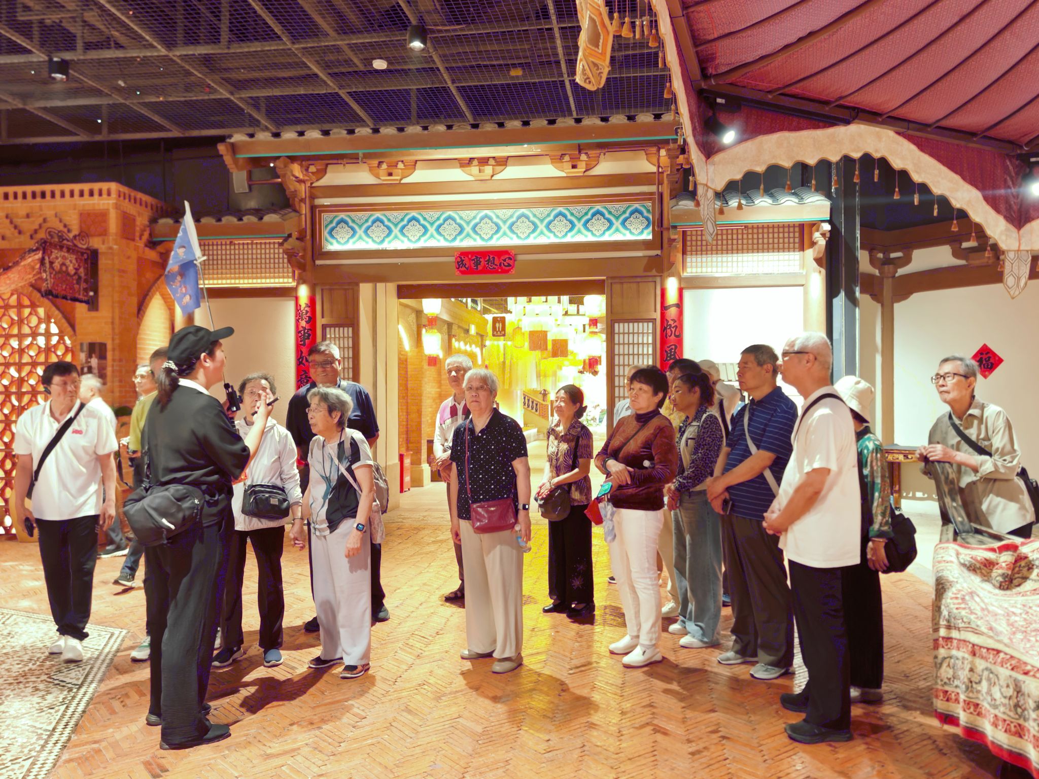 在伴游引导下,老教师们漫步景区,穿越远古山海、宋韵闽南、海丝闽南等特色场景,近距离观赏仿历史建筑与非遗展示,在一步一景中品读闽南千年文脉。