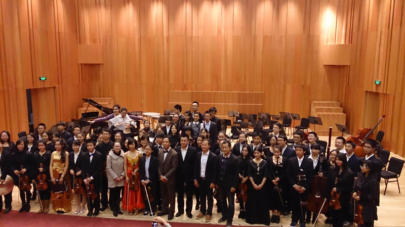 2013年11月30日晚,在艺术学院新音乐厅,为了提高学生的演出水平,答谢学校各部门、各单位师生的厚爱和支持,厦门大学学生交响乐团举办了《梁祝》专场汇报演出。校团委书记陈怀峰、生命科学学院党委副书记张伟、翔安校区团工委书记洪海松等老师和学生一起观看了演出。