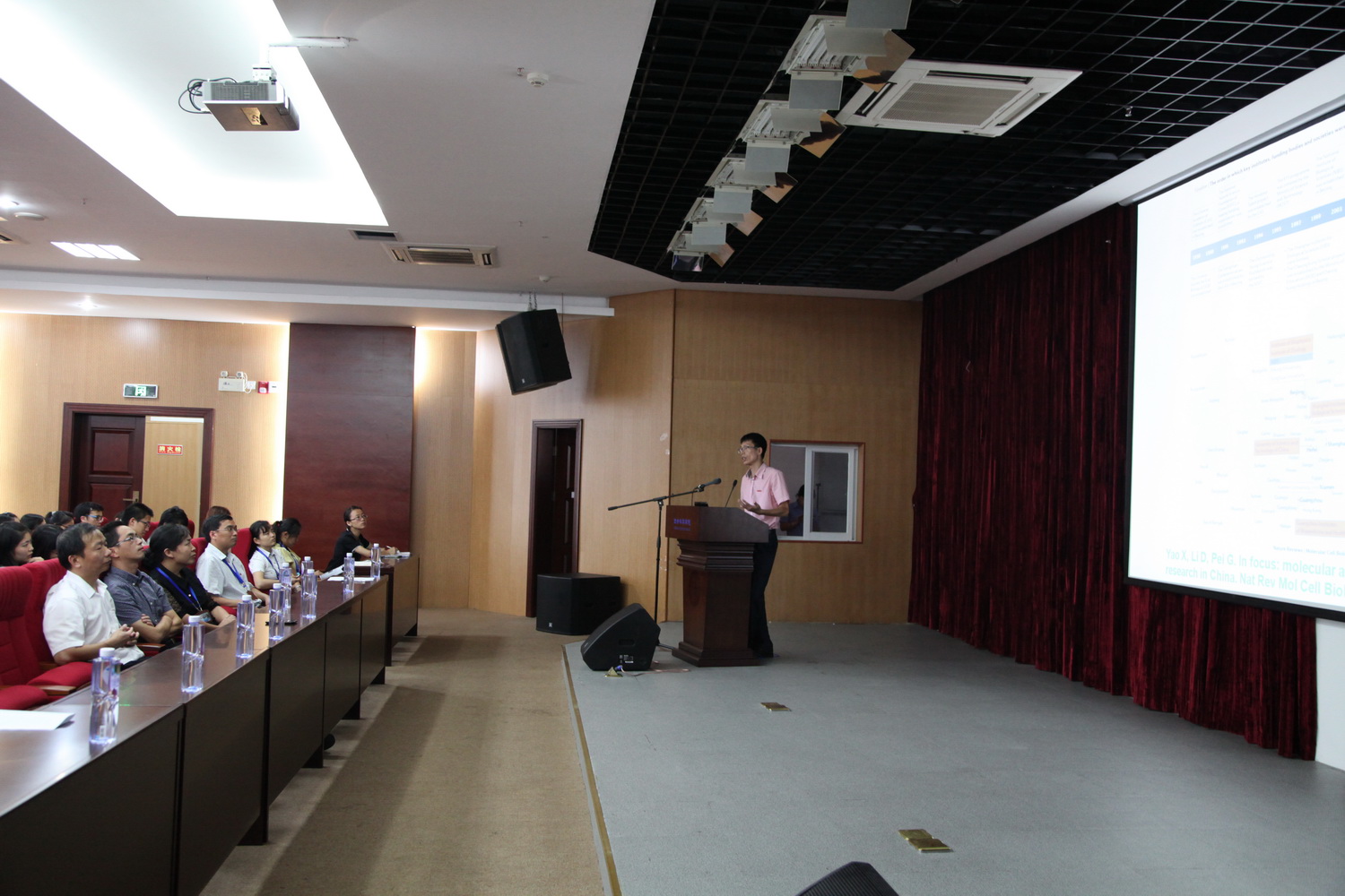 开学典礼在嘹亮的国歌声中拉开了帷幕。首先,周大旺副院长代表林圣彩院长致辞。“每个人都要有梦想,如何在科研这条路上坚持下去,做科研就是要敢于创新,勇于探索,坚持严谨为学的高尚品质,珍惜青春年华,为把自己培养成世界一流的人才、为把生命科学学院建设成为世界一流的学院而努力。”致辞中,处处寄托学院老师对于2013级研究生新生的希望。欧阳高亮副院长介绍了学院的概况,朴实无华的ppt上,如实展现着厦门大学生命科学学院近几年来的累累硕果,让同学们发自内心的认同了厦大生科院确实是知识的圣殿和智慧的天堂,无愧于南方之强这一响亮的称号。当欧阳老师结束讲话时,同学们鼓起了热烈的掌声。教师代表袁晶老师,谈吐轻松诙谐,向同学们传授了自己做科研的经验。老生代表李汉杰和新生代表李阳分别表达了自己“感谢厦大生科”“爱上厦大生科”的内心情感,他们活泼自然的方式使在座的同学在欢笑之余不乏感动。