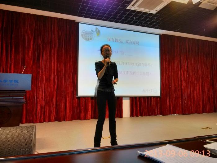 9月6日上午8时30分,2013级本科新生入学教育按计划继续进行,本次教育的内容是有关学校和学院的各项规章制度和政策。主讲人毛毛老师、刘静老师、陈运动老师分别为新生们介绍了学校有关的政策制度、申请入党流程、安全问题、心理健康以及奖助勤贷等内容。党委副书记张伟老师亲临现场指导,会议由新生辅导员吴佳蓓主持。