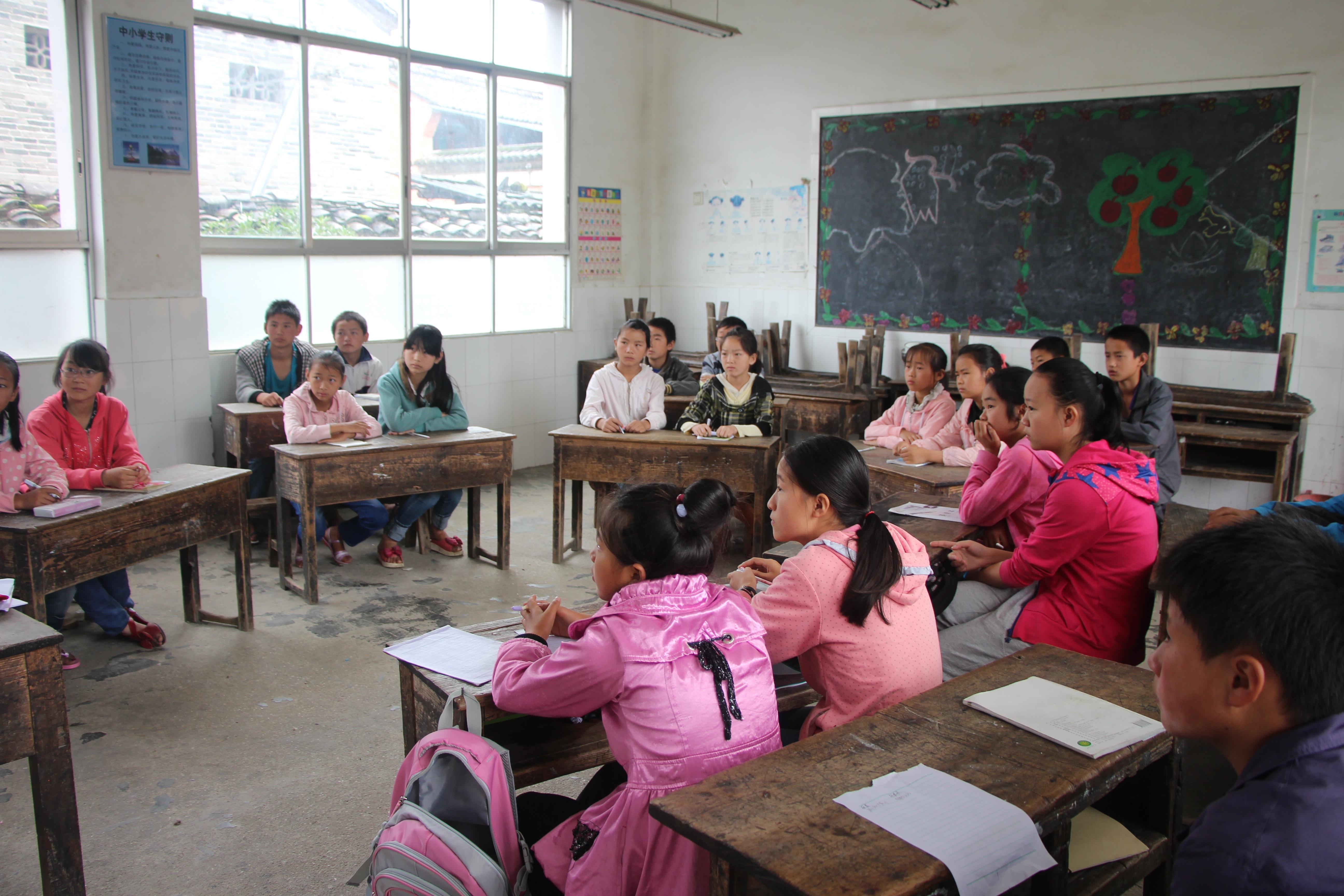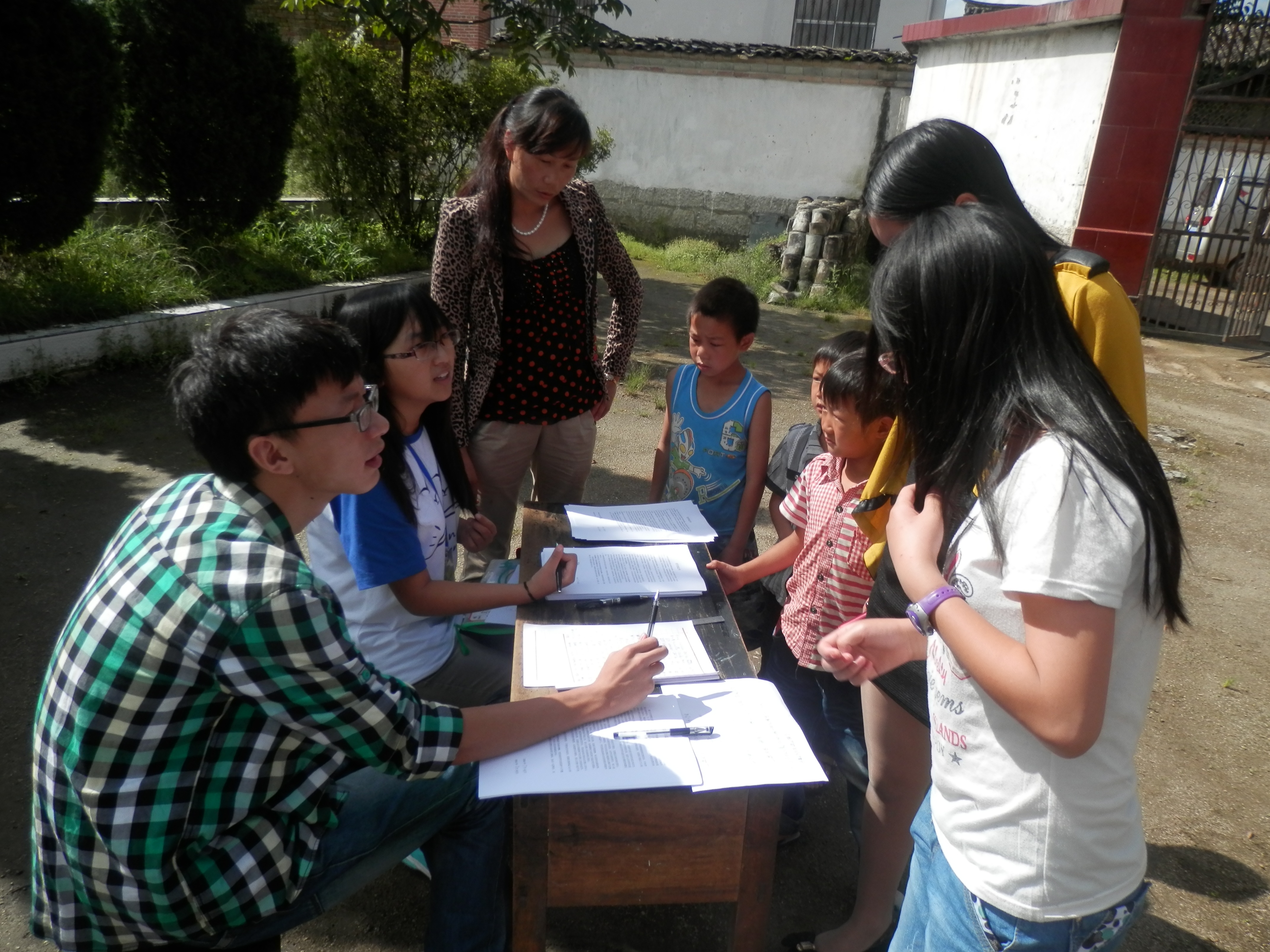 7月31日至8月1日,队员们走访了育英完小附近几个寨子的小学生,初步了解了小学教育的基本情况,并向村民进行了暑期夏令营宣讲。两天时间,吸引了160多位小朋友报名,出于安全因素和教学质量的考虑,共招收了二到六年级的90名小朋友,并按照年级分成三个班,分别是孝悌班、谨信班、仁爱班,名字取自中国传统文化典籍《弟子规》,也与我们的中国梦宣讲团主题相符。