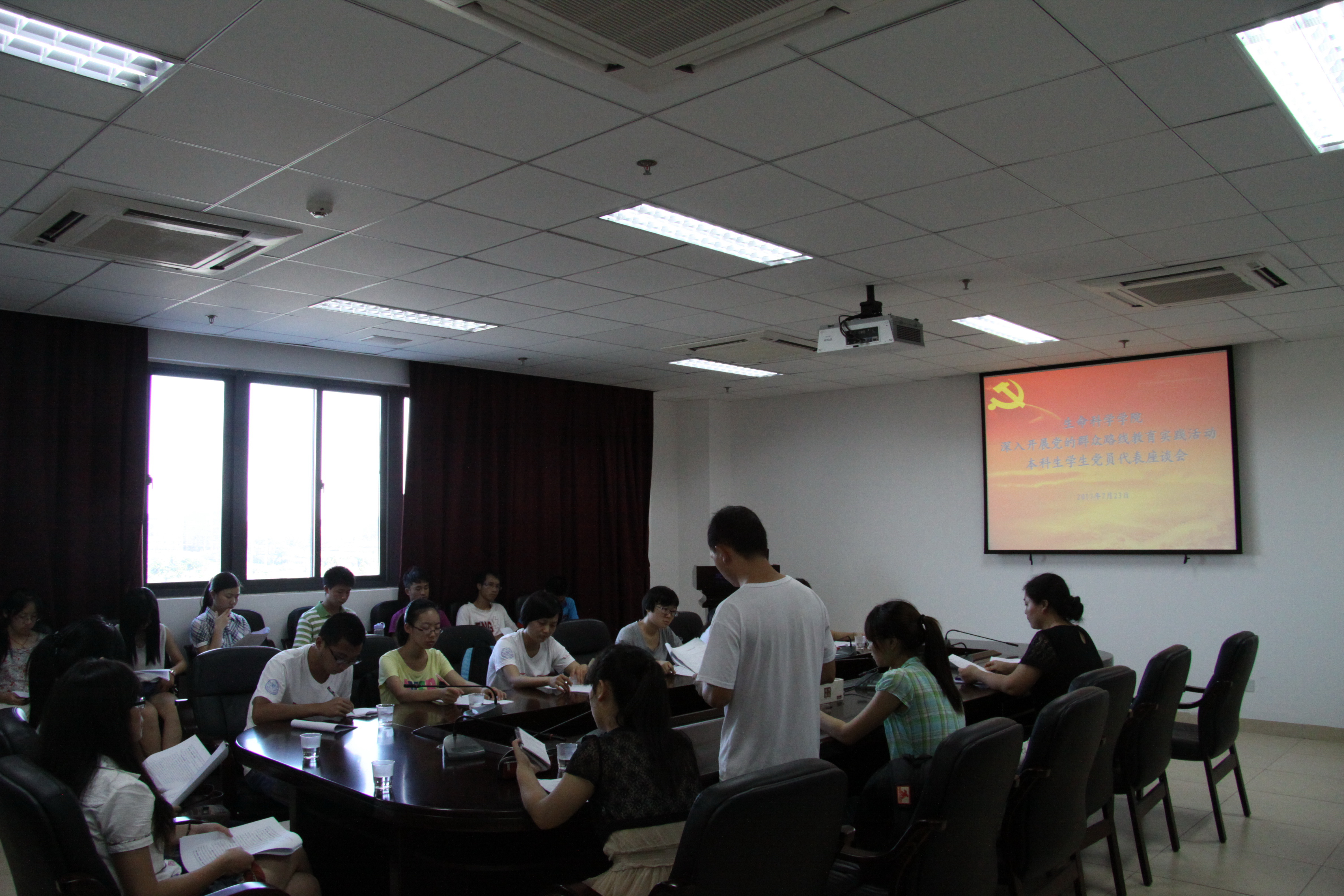 为进一步贯彻落实中央和学校关于深入开展党的群众路线教育实践活动的精神,根据学院党委工作部署和安排,我院于7月23日下午在黄朝阳楼B308会议室召开了本科生党员学习座谈会。本科生党支部书记及党员代表参加了此次座谈会。学院党委副书记张伟出席了会议并作讲话,辅导员陈运动参加了会议。会议由2010级本科生普通班党支部宣传委员彭国禹主持。