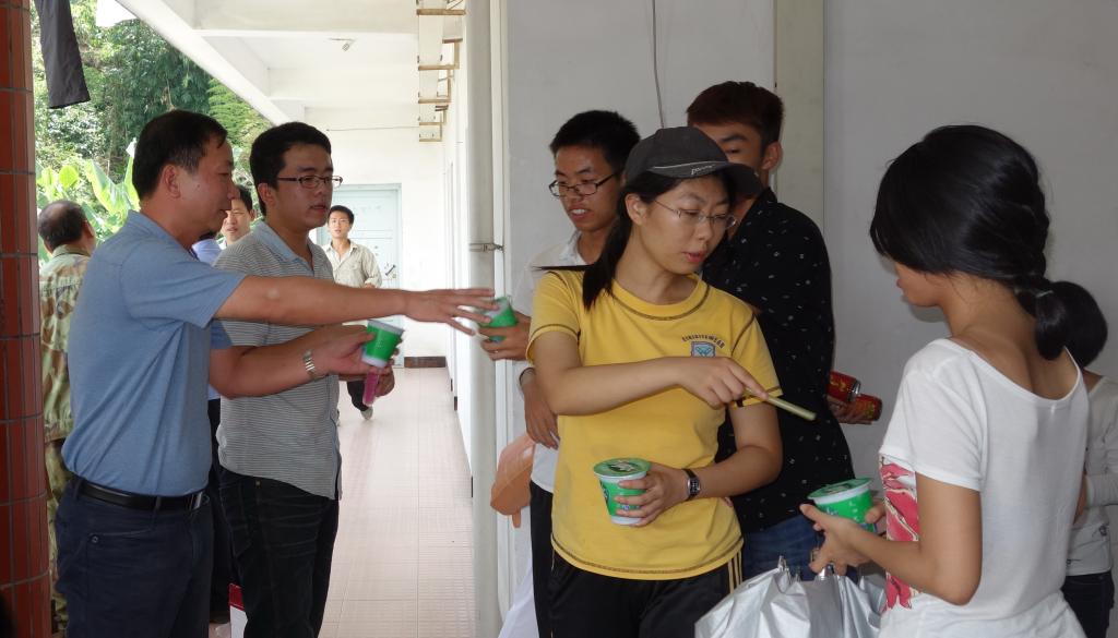 同时,学院为生产实习基地宿舍配备的23台空调也已运达,并在慰问队伍到达之时安装完毕,给酷暑天跑野外的师生带来了清凉舒适的休息环境。陈光书记亲自把消暑的王老吉凉茶和绿豆冰送到刚刚从雨林回来的师生手中,冰甜入口,师生的疲惫与躁热顿时消失得无影无踪。