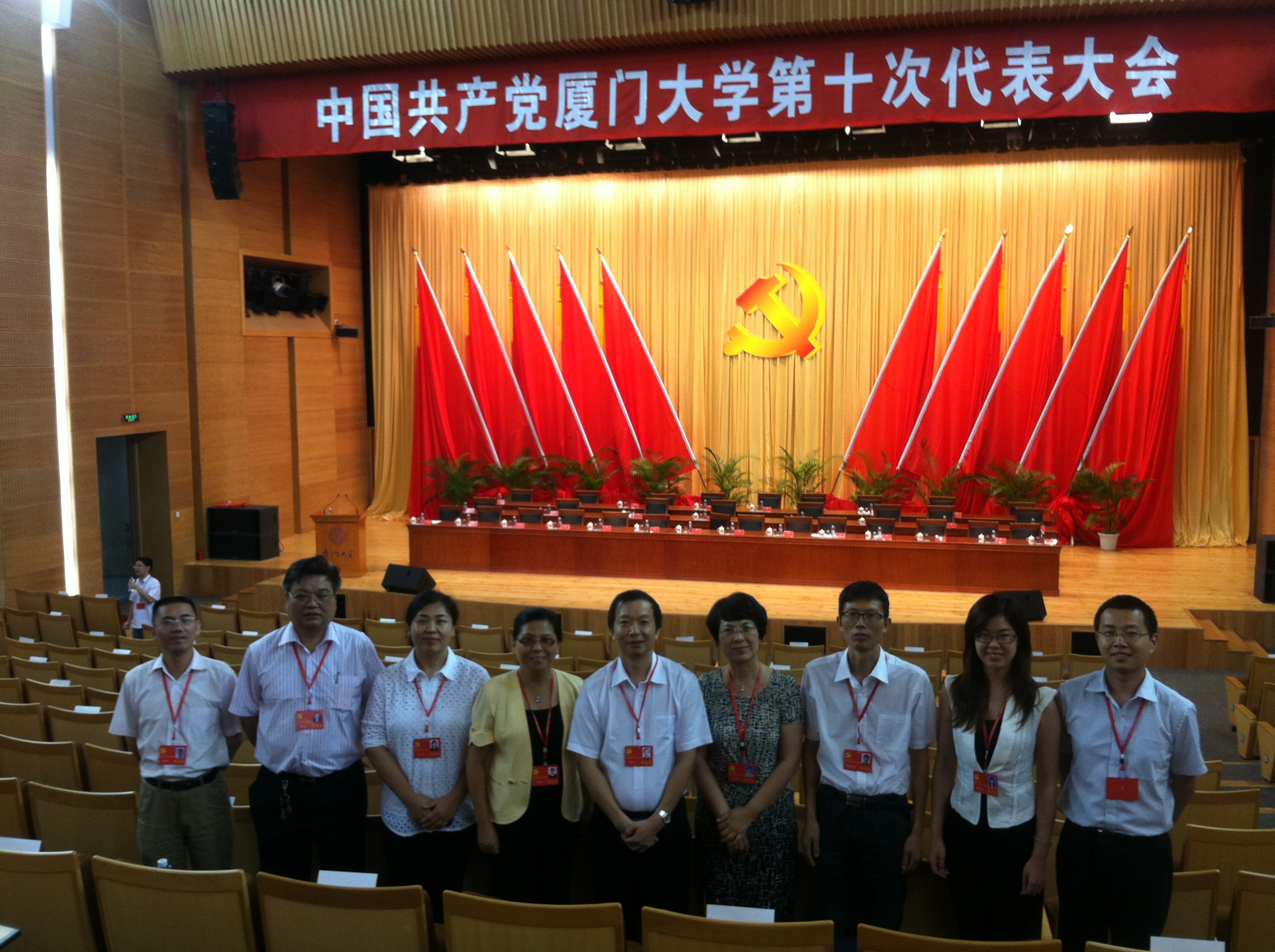 6月17日至6月19日,中国共产党厦门大学第十次党员代表大会在学校科学艺术中心隆重举行,我院党委陈光书记、原党委书记司卓亚、副院长欧阳高亮、党委张伟副书记、吴乔教授、陈清西教授、办公室谢忠主任以及学生代表王维嘉和柳立婕参加了大会。
