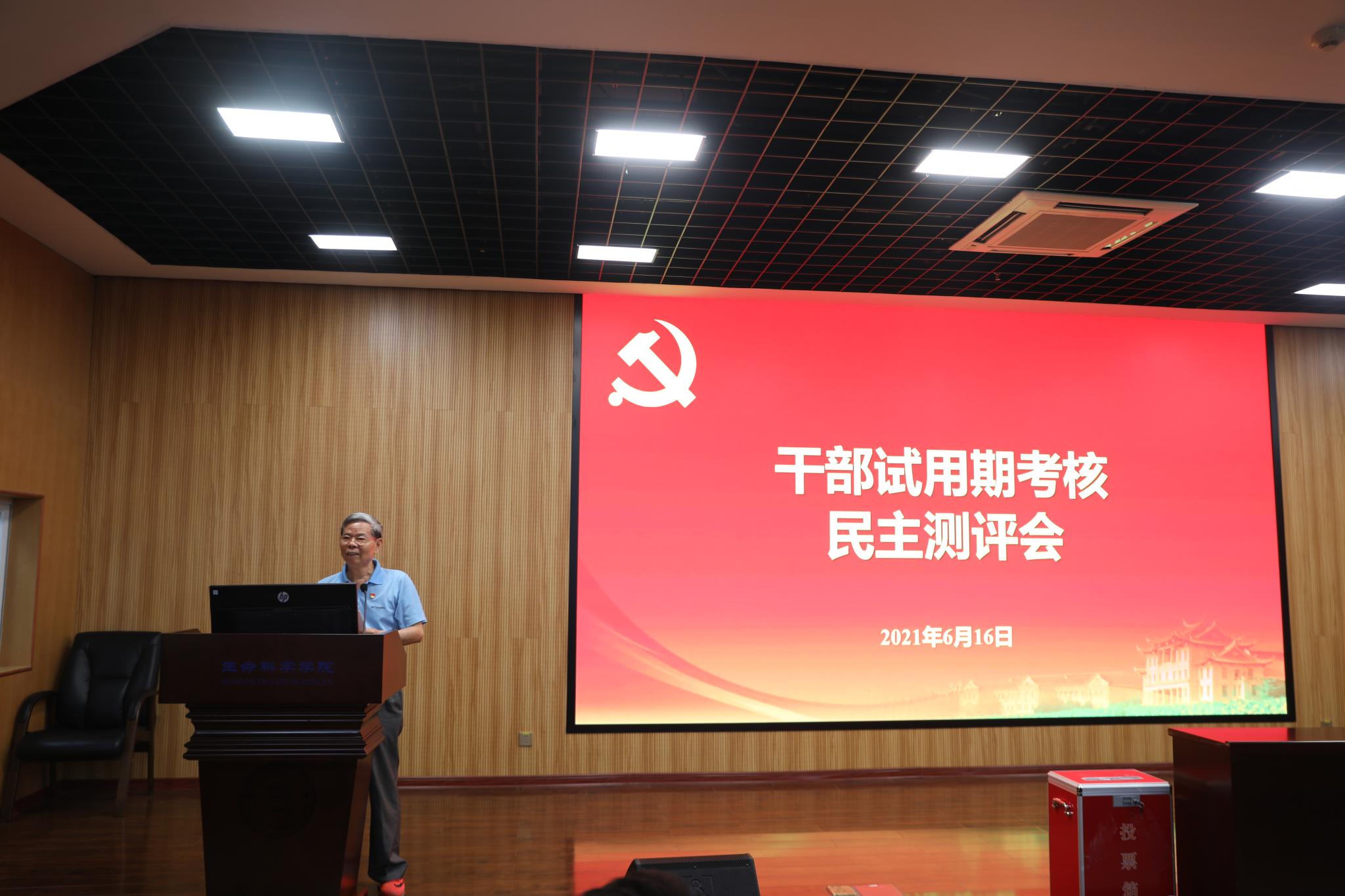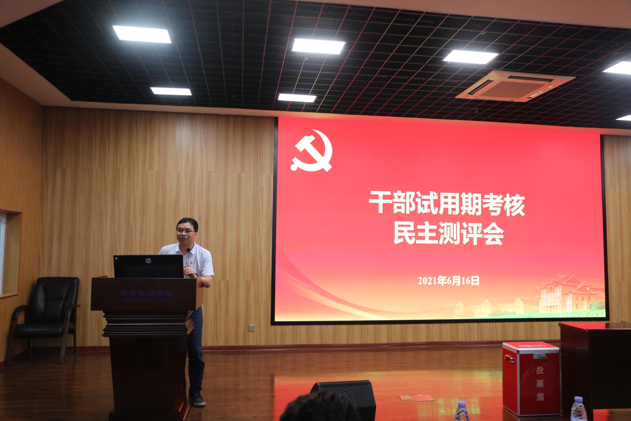 6月16日上午九点三十分,根据校党委组织部的研究部署,对我院党委书记左正宏进行试用期满考核。大会由校党委干部考察组组长陈正国主持,林自和、黄定基、曾安为考察组成员。部分教职工代表参会。