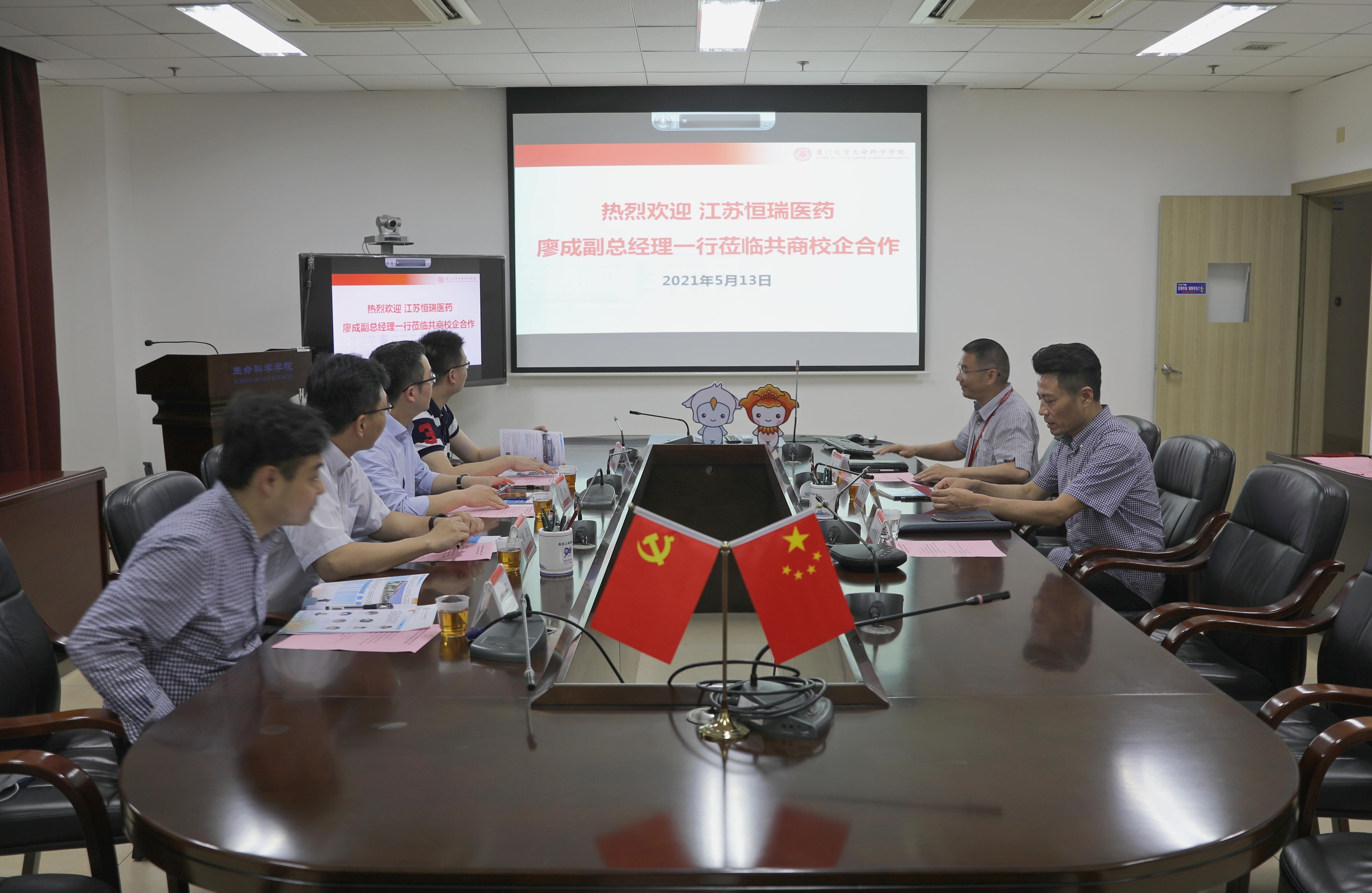 5月13日,江苏恒瑞医药股份有限公司廖成副总经理一行到访我院并共商校企合作。副院长李博安、院长助理谢忠等参加座谈会。
