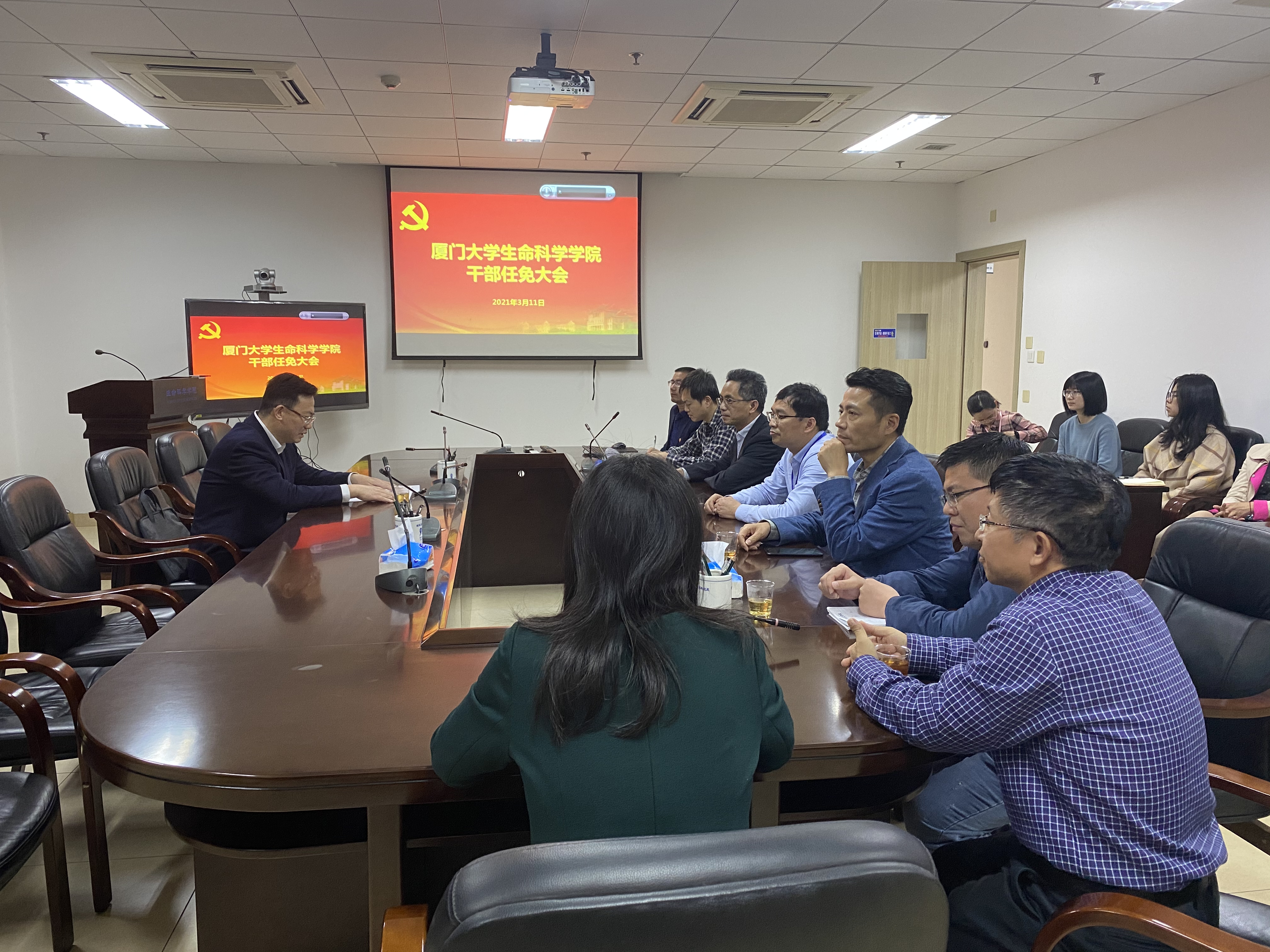 孙理部长代表学校党委宣读了生命科学学院党委副书记的任免决定:张宇斌同志任中共厦门大学生命科学学院委员会委员、副书记,葛郝锐同志不再担任中共厦门大学生命科学学院委员会副书记职务。