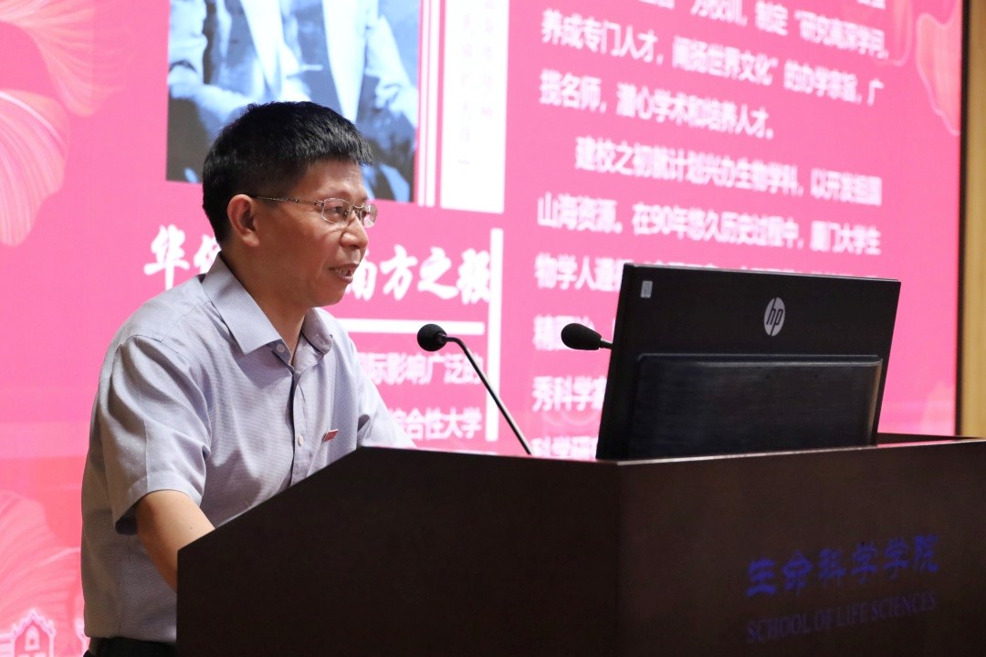 随后,学院党委书记左正宏教授发言。左正宏教授首先感谢新生家长们对学院的选择与信任,并请家长放心,学校良好的环境和强大的师资团队会为学生的生活与成长提供有力保障。此外左正宏教授强调了“21世纪是生物科学的世纪”,同学们在这个方向进行学习研究有着光明的前途。最后,左正宏教授表达了对新生们的衷心祝愿,希望同学们能在厦大生科院度过人生最美好、最精彩、最幸福的时光。