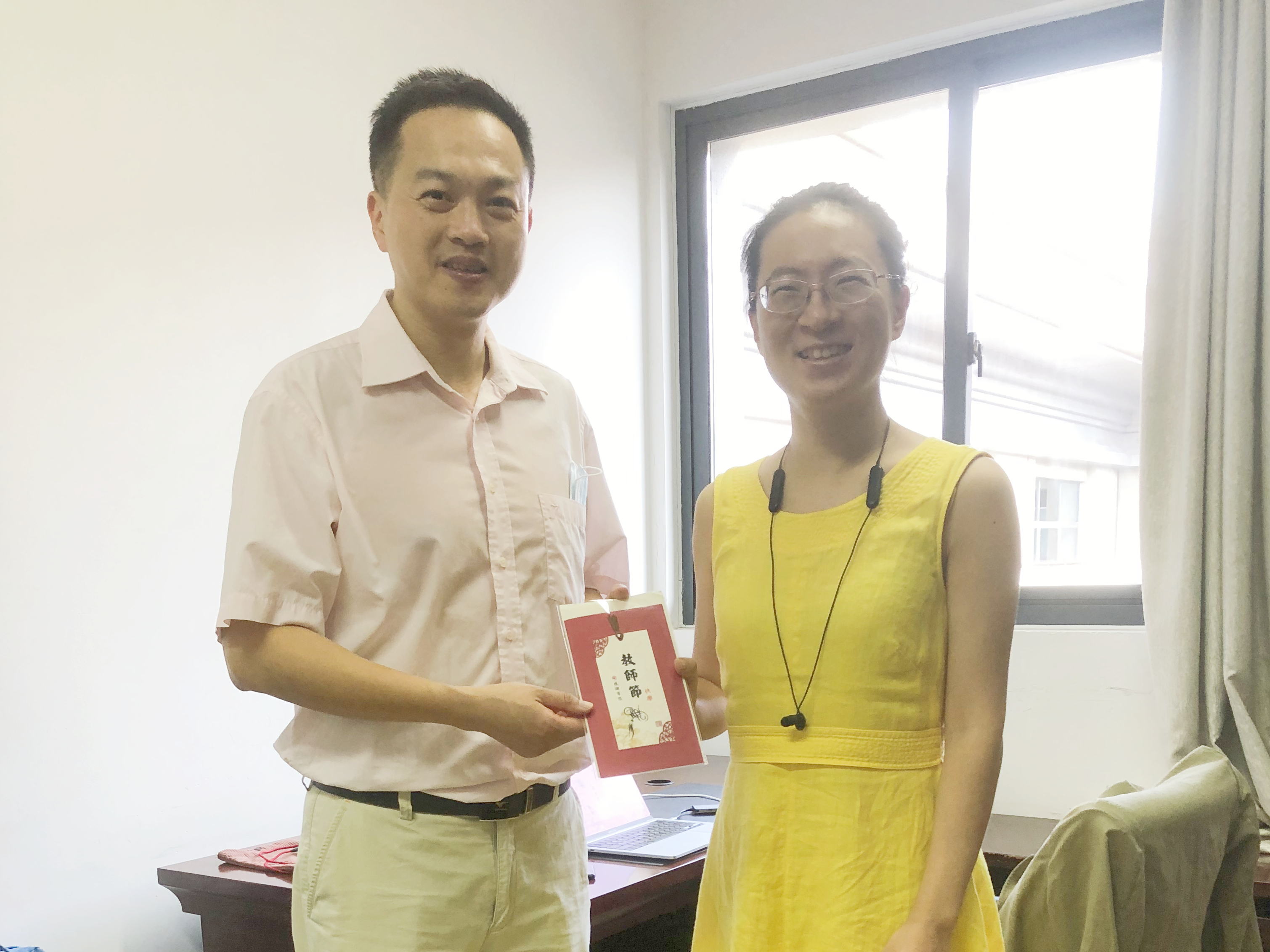 9月10日,学院党委副书记张宇斌代表学院走访了三位新入职教师,关心了他们的实验室建设进展情况、学生培养情况、工作环境是否适应等问题。同时,学院精心准备了教师节贺卡,代表全院师生向走上教师工作岗位的年轻老师们致以首个工作节日的问候和祝福。