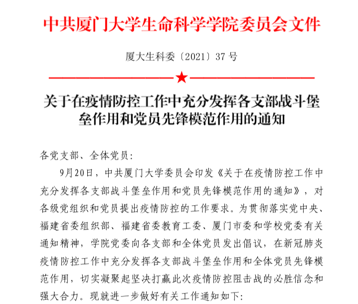 自9月新型冠状病毒肺炎疫情发生以来,生命科学学院党委快速响应,分类施策,团结带领广大师生党员积极投身抗击疫情战线,迅速凝聚起抗击疫情强大合力,牢牢构筑疫情防控坚固防线。