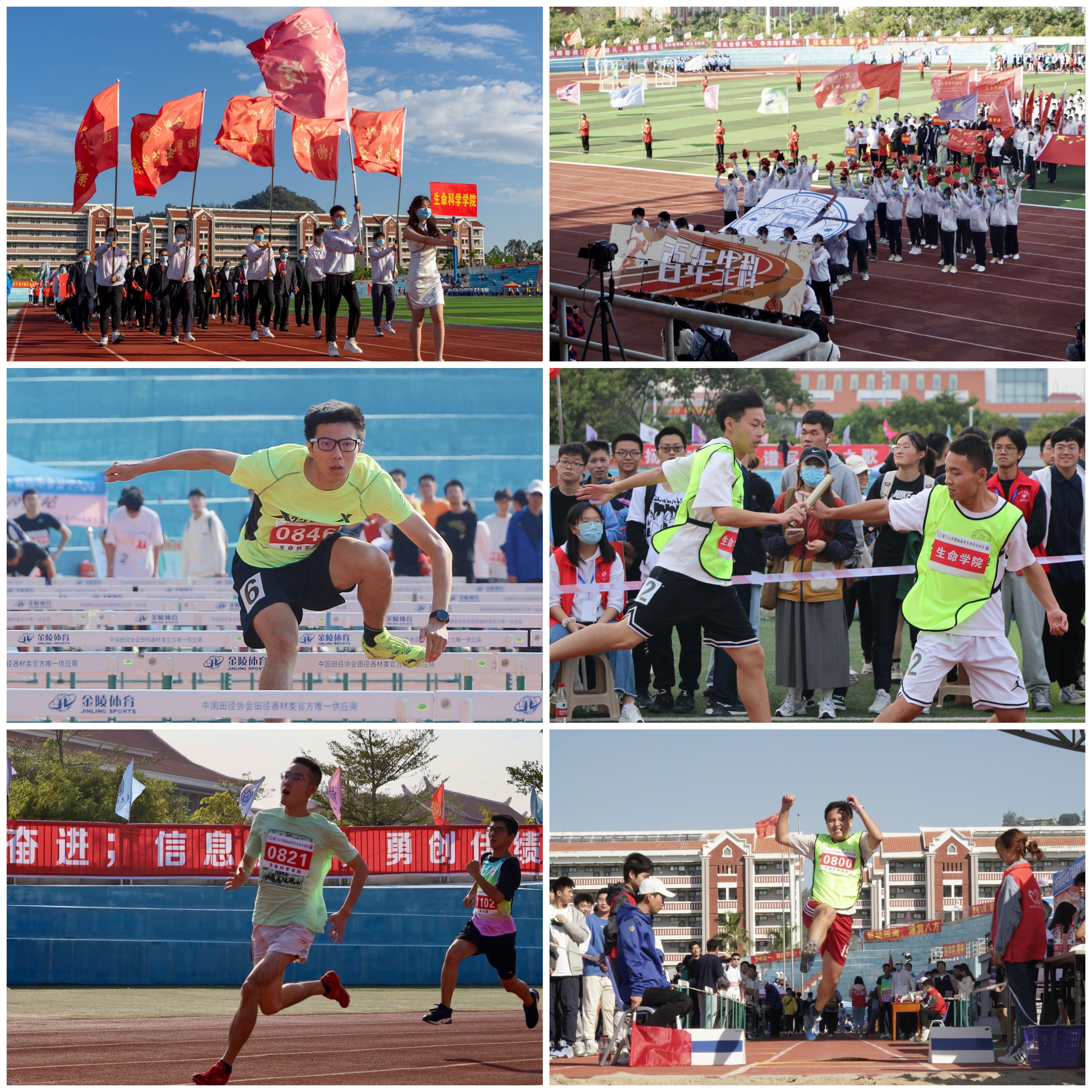 2021年11月12日至13日,我校第56届学生田径运动会在翔安校区一期田径场如期举行。鼓声激越,呐喊铿锵;步伐矫健,自信昂扬。生科学子在运动场上尽情挥洒汗水,以厦门大学翔安赛区学生组团体总分第一名、健身气功八段锦集体展示第一名、本科生组第五名、研究生组第三名的骄人成绩,为百年生科献礼!