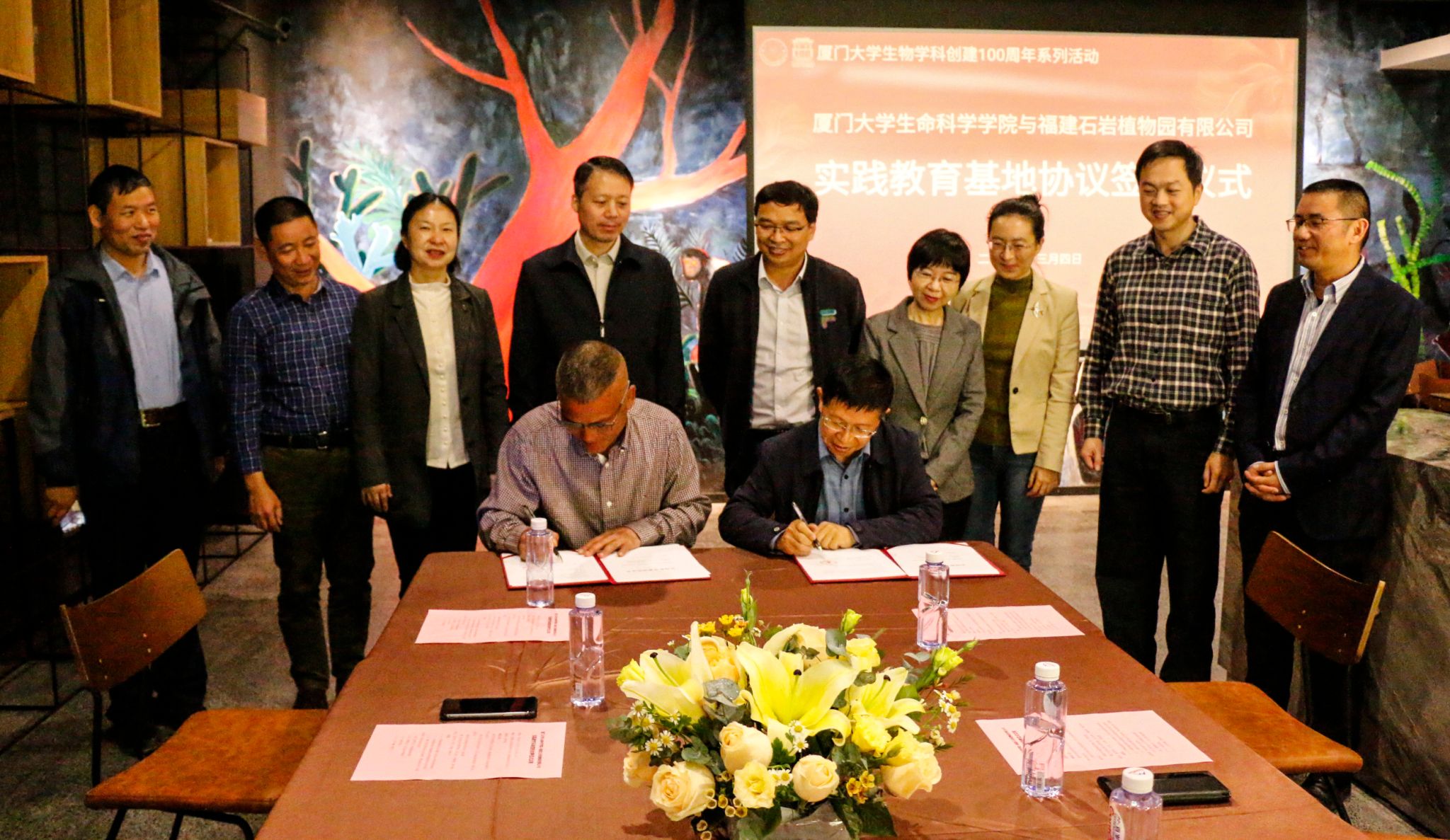 随后,李勤喜代表学院与福建石岩植物园有限公司签订《厦门大学生命科学学院校外实践教育基地协议书》。