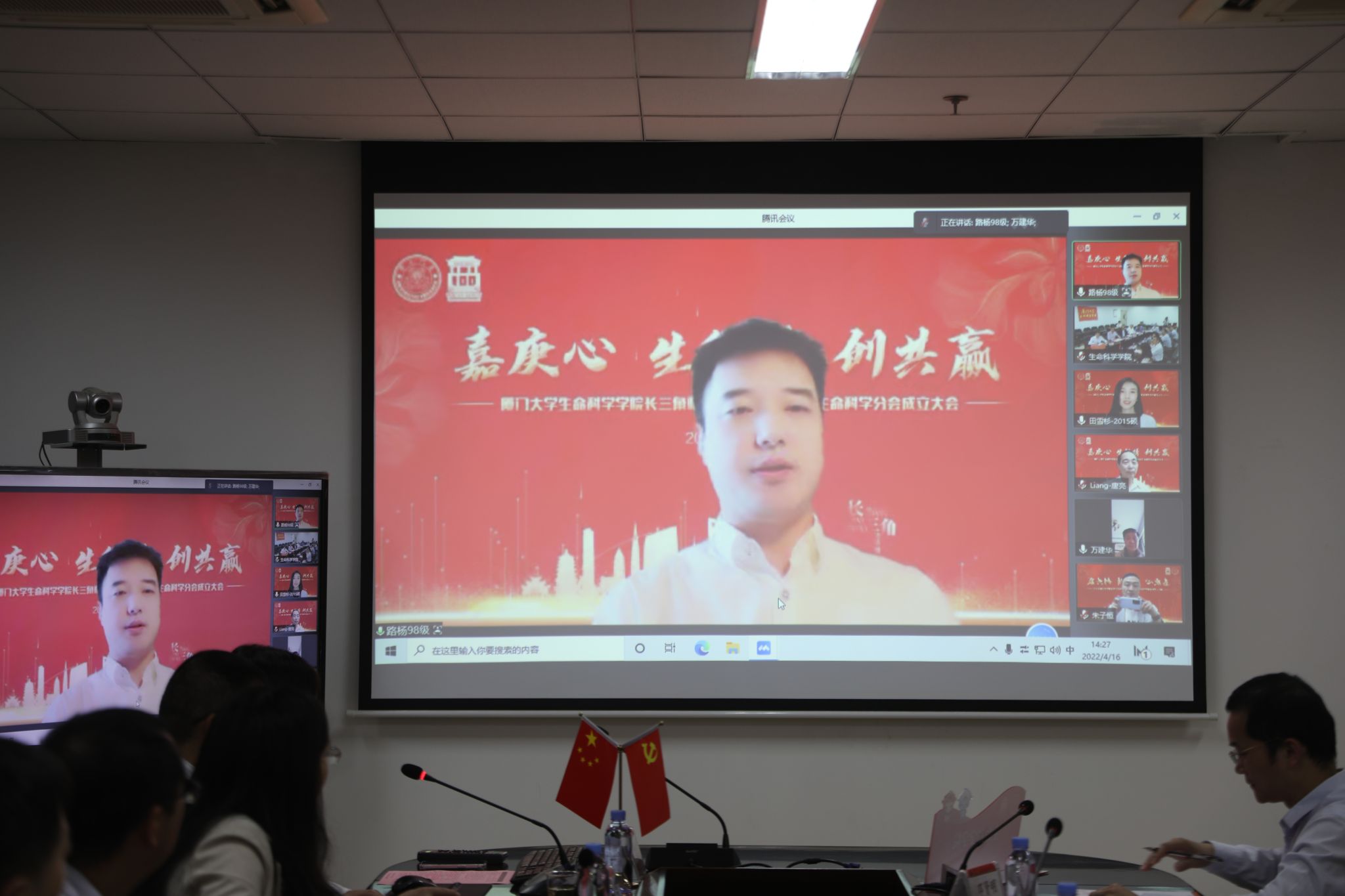 4月16日,厦门大学生命科学学院长三角院友会暨上海校友会生命科学分会成立大会以线上线下相结合的方式隆重举行。厦门大学副校长周大旺,厦门大学上海校友会理事长万建华、执行会长陈建,生命科学学院党委书记左正宏、副院长(主持工作)邓贤明、副院长郑世进、党委副书记葛学凤、张宇斌,厦门校友会生命科学分会会长翁师德、常务副会长宋思扬、秘书长彭振庆,福州校友会生命科学分会会长陈兵、秘书长程健,京津冀院友会会长林长青,粤港澳院友会秘书长朱子恒等嘉宾出席了此次大会,与长三角地区校友及线上收看直播的三千余位师生校友相聚“云端”,共同见证学院长三角院友会的成立。