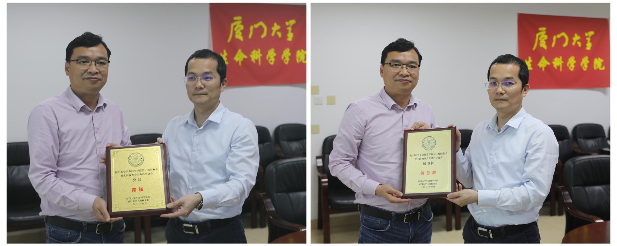 生命科学学院党委书记左正宏、副院长(主持工作)邓贤明共同授予生命科学学院长三角院友会会旗及会牌,同时为长三角院友会科创中心授牌。