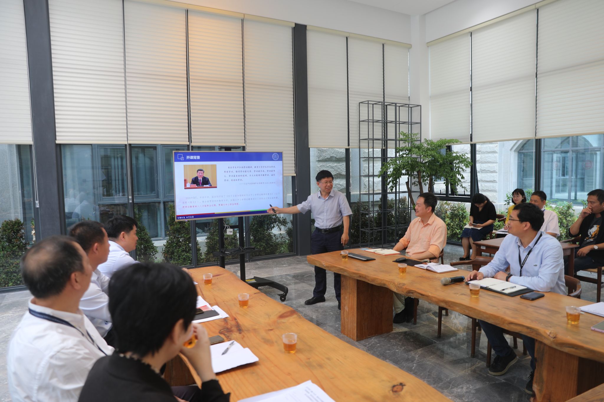 随后,劳动教育课程任课老师介绍了课程具体内容,与会职能部门人员分享了对劳动教育课程落地落实的看法和建议。