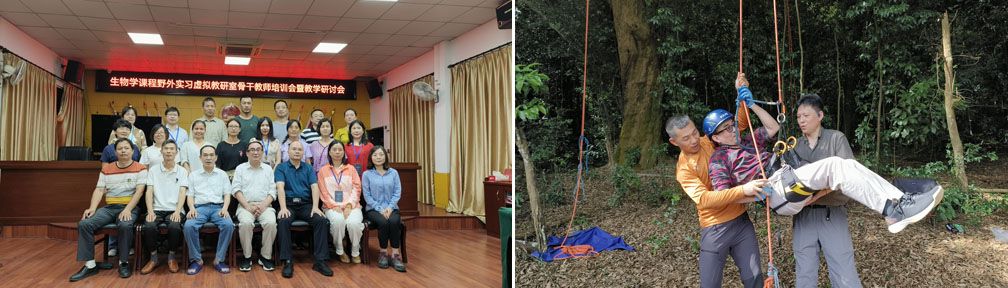 6月28日至7月2日,虚拟教研室在厦门大学南靖和溪野外实习基地举办骨干教师培训会。培训团队与厦门大学参加生物学课程野外实习的学生们一起,抵达实习基地,深入虎伯寮国家级自然保护区,参与课程实习,并全程参与了穿越雨林、攀树、标本采集及制作、生物农药制作、动植物生态环境观测和气象观测等实习过程。在云霄漳江口红树林国家级自然保护区,培训团队与实习学生一起学习了红树林生态系统、种类鉴定、各类呼吸根和鸟类的观察等实习项目。