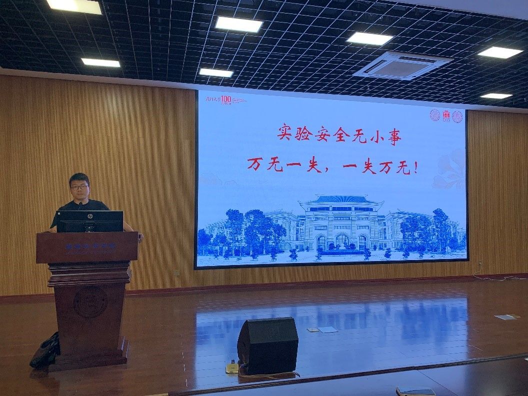 为提高学生的安全意识,掌握实验室安全相关知识,营造暑期安全稳定的校园环境,8月3日上午,我院在黄朝阳楼五楼报告厅举办2022年暑期学生安全教育培训大会,为2022级提前来校研究生和来院交流生等200人开展全方位的安全教育培训,切实保障在校学生的安全。学院党委副书记张宇斌、科研服务中心执行主任范彬彬、团委书记龚树丰等出席了会议。