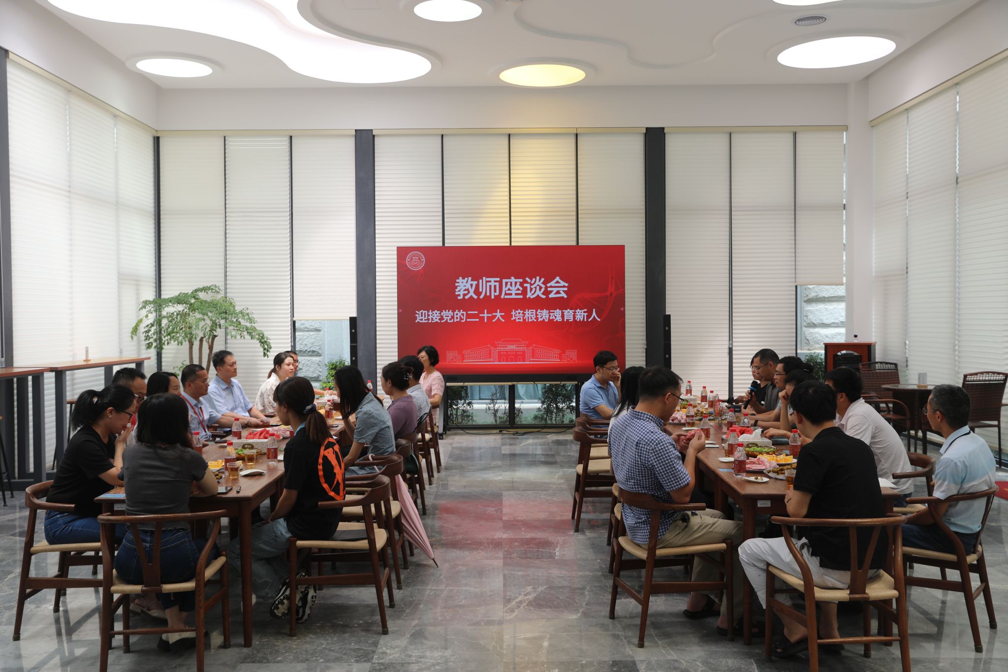 9月8日中午,在第38个教师节即将来临之际,我院举行“迎接党的二十大 培根铸魂育新人”教师座谈会。学院青年教师代表、新入职教职工与学院相关负责人齐聚一堂,谈体会、说感受、谋发展。学院党委书记左正宏,副院长(主持工作)邓贤明,副院长李勤喜、郑世进、黄烯,党委副书记张宇斌参加座谈,座谈会由副院长郑世进主持。