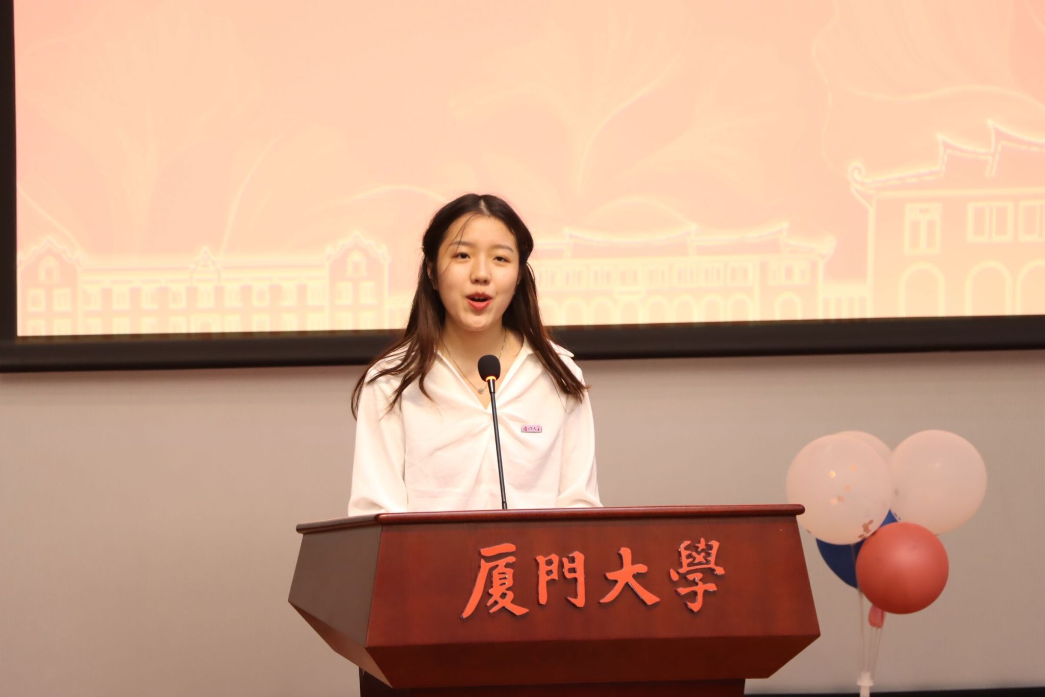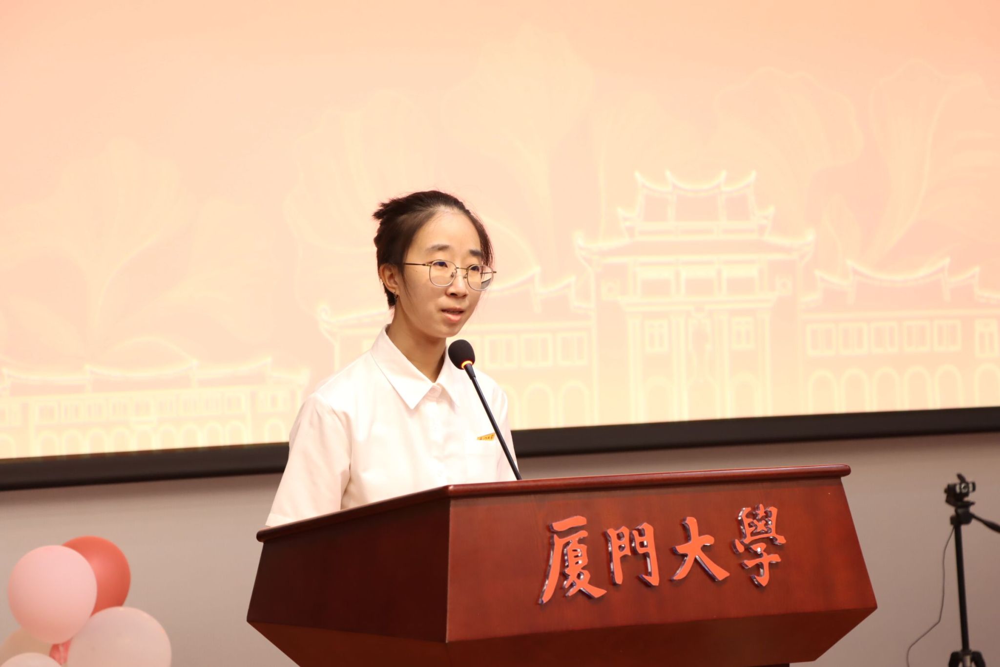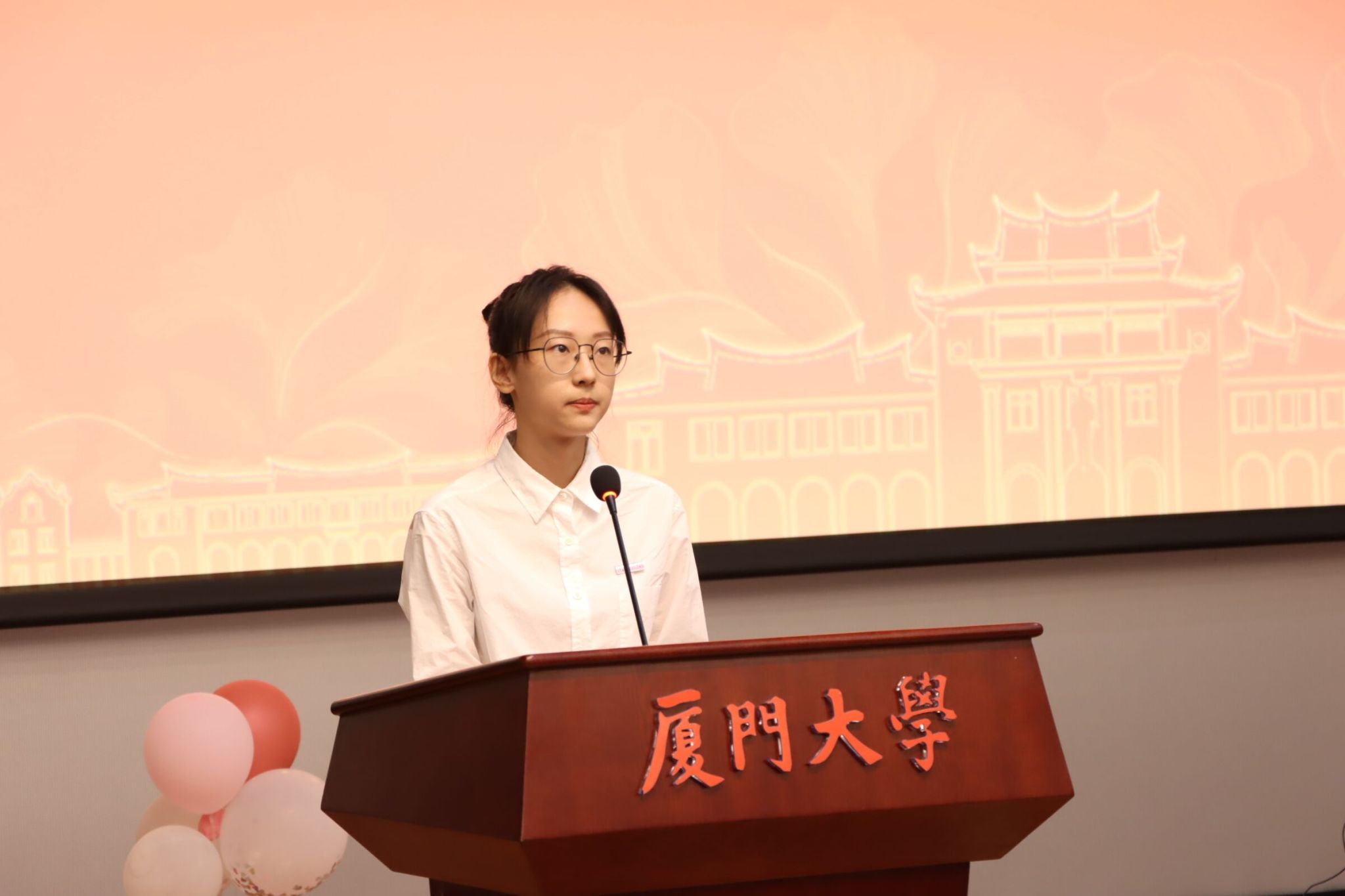 2022级本科生新生代表张俊琳与2022级研究生新生代表孙达超分别发言。张俊琳提到了三个关键词:一是转变,在心理方面调整自我定位,在学习方面培养新的思维模式;二是传承,百年生科,底蕴深厚,同学们应当将生科精神传承并继续发扬光大;三是成长,在接下来的四年,同学们更应找寻自己的目标,脚步不停,奋斗不止。孙达超讲述了自己与生命科学的缘起,回忆了本科在厦大的求学时光。他表示,作为一名生科研究生,他将锲而不舍地去实践、去追求真理、去勇攀高峰、去突破人类的知识边界。