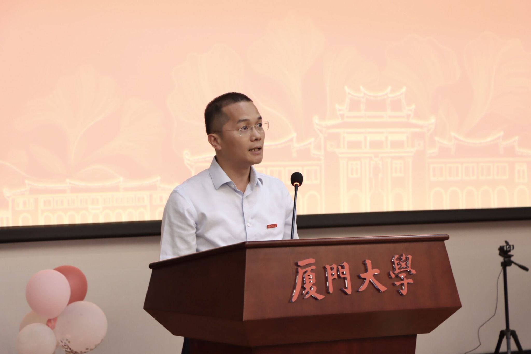 黄宏龄教授作为教师代表发言。黄宏龄教授提到,尽管自己未能在厦大求学,但被“自强不息,止于至善”的校训精神和“传承创新,求实至善”的生科精神所打动,最终成为了厦大生科的一员。他说,不论是做人还是做科研,都要有创新的意识和求真的精神。最后,黄宏龄教授鼓励同学们积极进取,潜心向学,以务实的姿态面对未来的学习生活。