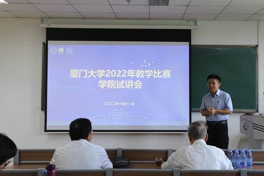 试讲会由副院长李勤喜老师主持,特别邀请到国家级教学名师沈明山、福建省教学名师朱亚先以及学院资深教师袁立到场点评指导,同时教学部多位教学和比赛经验丰富的老师及学院新进教师也参加了本次试讲会。