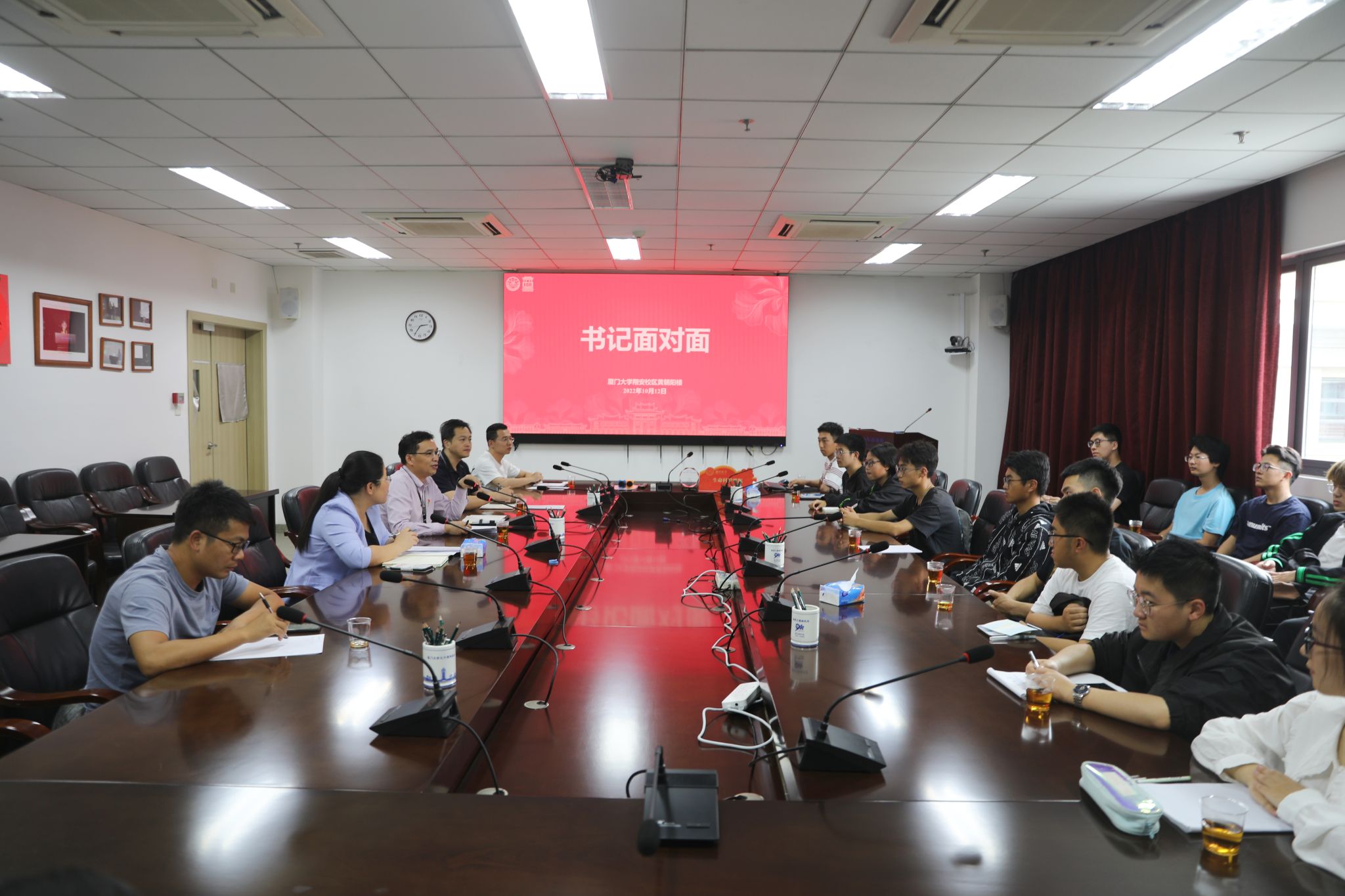 左正宏首先向新同学们介绍了学院的人才培养、科学研究、平台建设等基本情况,指出本次活动旨在通过“面对面”“零距离”的交流,深入了解同学们的学习、科研、思想、生活等各方面情况,实实在在地为初入厦大的同学们答疑解惑、排忧解难。