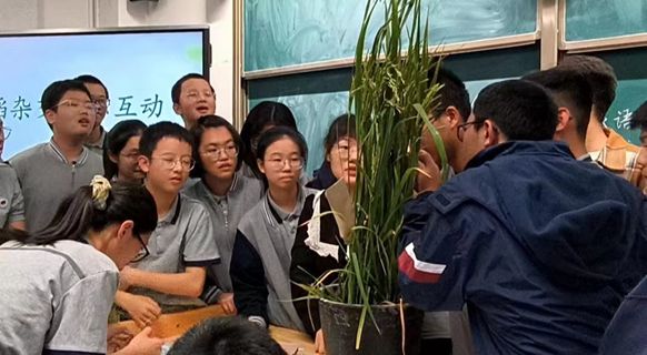 植物学二班研究生党支部将价值引领融入科普实践,聚焦国家粮食安全战略,开展“粮食安全”主题科普。支部成员陈锶雨以袁隆平院士的“禾下乘凉梦”开场,讲述植物学科研究生的日常水稻育种科研工作,为大家解答“为什么需要水稻杂交?”“水稻杂交实际应用是什么?”等问题,解密水稻科研育种的艰辛和不易。为更生动直观展示水稻杂交,支部成员将两株一米多高的水稻苗从厦大“八闽园”土中移出,搬到课堂,现场演示水稻杂交实际操作,剪花药、套袋记录、取粉授粉,充满好奇的中学生们围站在讲台边,听得津津有味。演示结束后,同学们纷纷举手参与水稻杂交动手操作,原先只出现在课本内的水稻杂交鲜活起来,大家踊跃提问,现场气氛热烈。