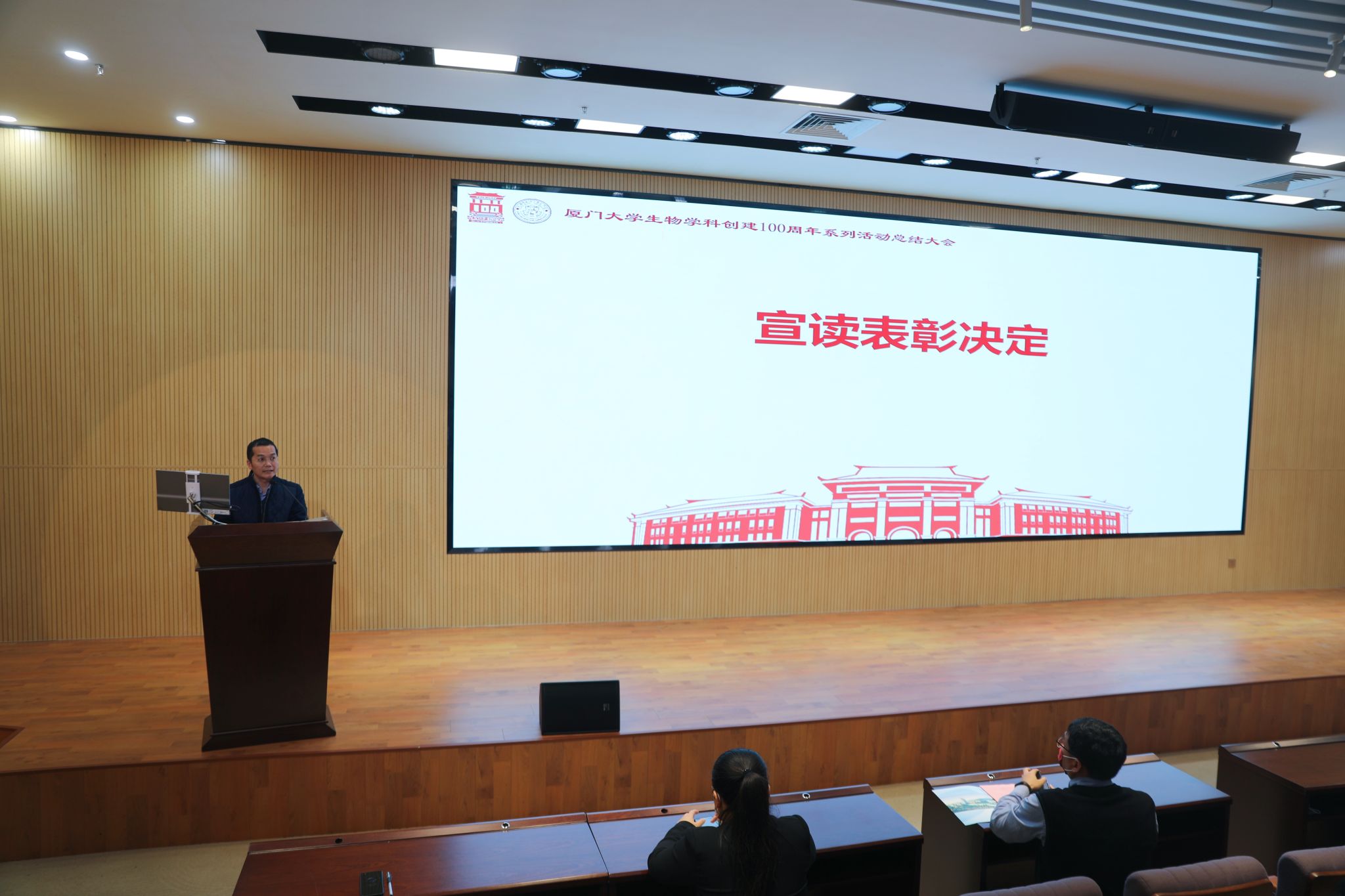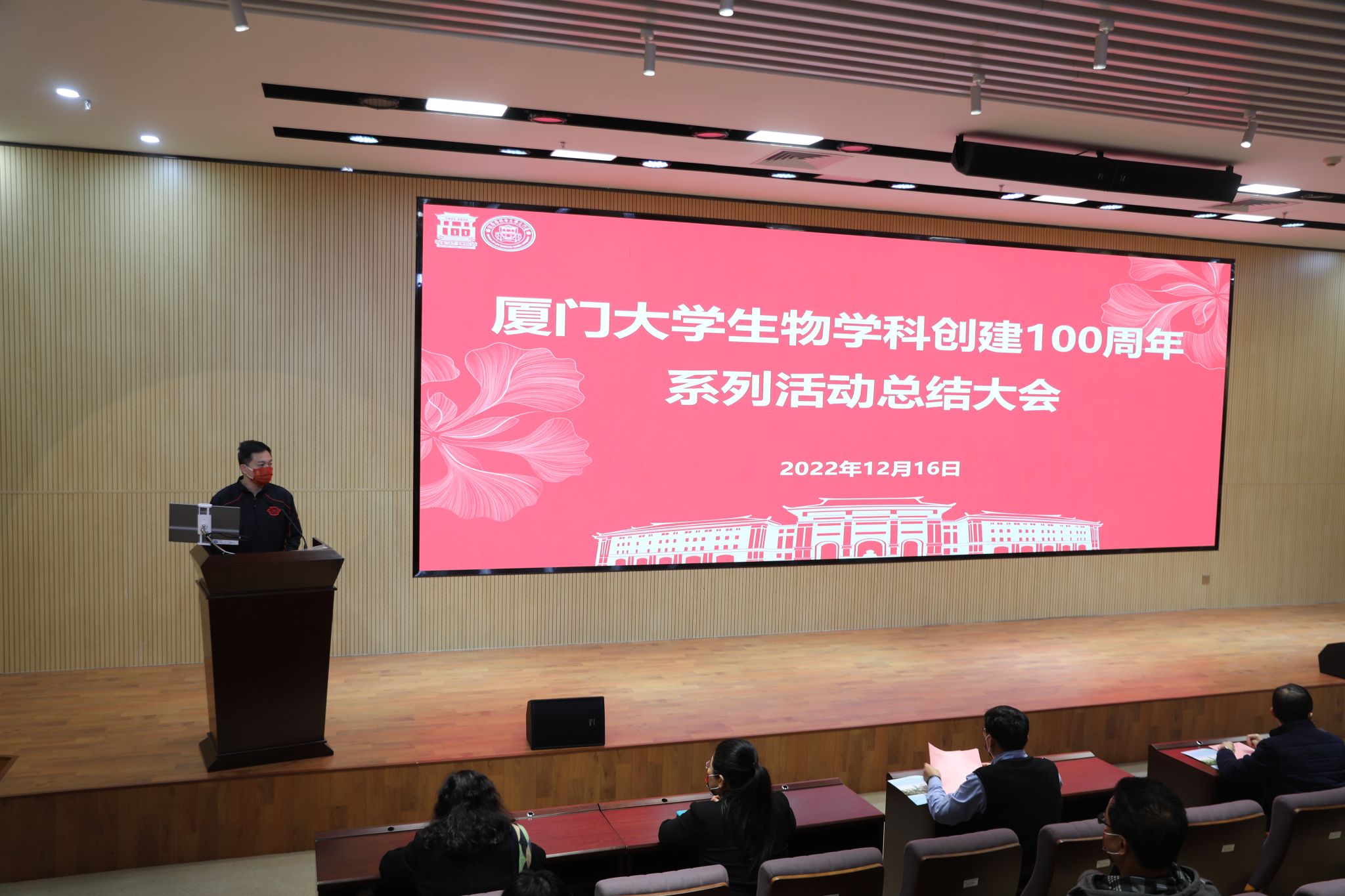 12月16日中午,学院在跃进楼报告厅举行厦门大学生物学科创建100周年系列活动总结大会,凝练工作经验,表彰优秀典型,进一步推动学院各项事业更好更快发展。学院党政领导班子,师生代表参加了本次总结大会。会议由学院党委副书记张宇斌主持。