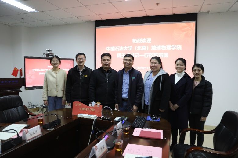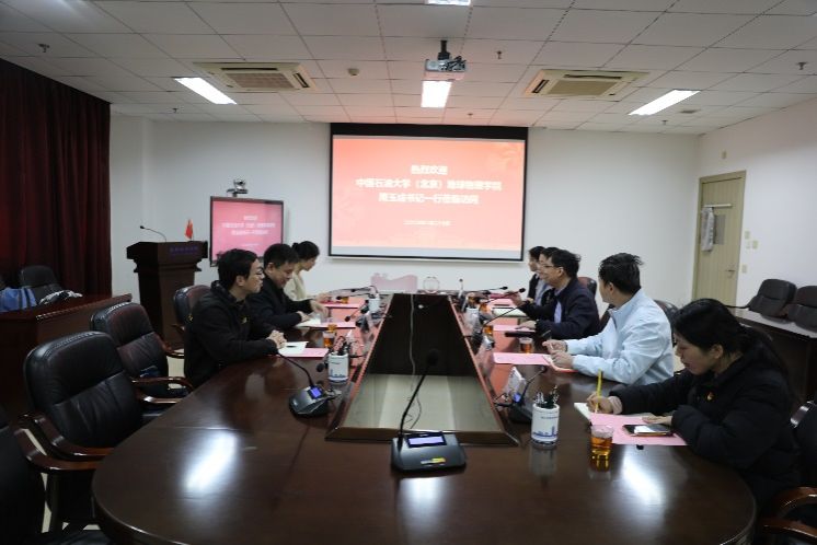 2023年2月27日,中国石油大学(北京)地球物理学院党委书记周玉成、副书记陆杭波、专职组织员马亚秋一行三人来访我院交流党建工作经验。交流会在黄朝阳楼B308会议室举行,学院党委书记左正宏,副书记张宇斌、叶秀蓉,党务秘书、党委组织员等参加会议。