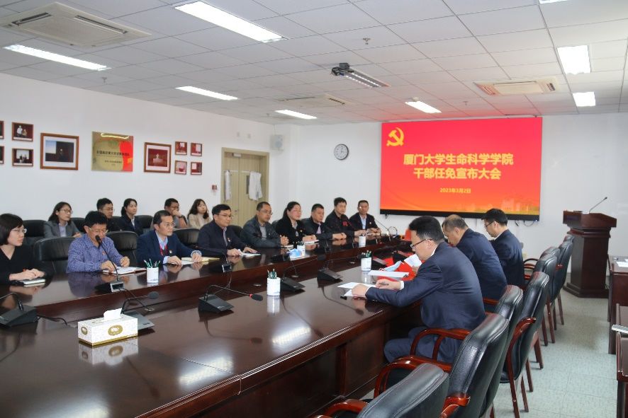 会上,林东伟常务副书记代表学校党委宣布干部任免决定。经校党委研究决定,马进龙同志任中共厦门大学生命科学学院委员会委员、书记,试用期一年,免去左正宏同志的中共厦门大学生命科学学院委员会书记、委员职务。林东伟代表校党委对左正宏同志为学院的改革发展稳定所付出的心血和努力,以及作出的积极贡献表示肯定和感谢;希望学院坚持党的全面领导,推动学院工作展现新作为,取得新成就;坚持守正创新,奋力开创学院高质量发展新局面;坚持强化班子建设,打造素质过硬的教师干部队伍;坚持全面从严治党,营造干事创业的良好氛围。