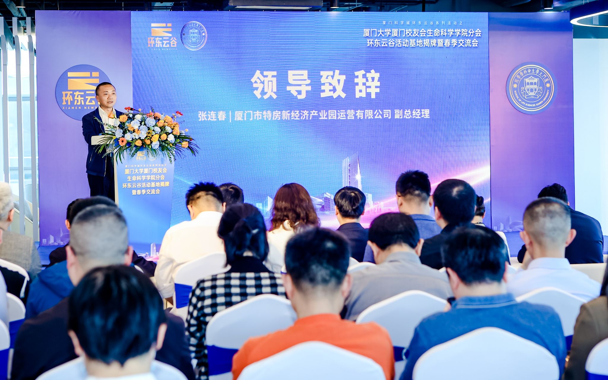 为了更好地促进产业集聚,加强科创交流,2023年3月10日,厦门大学厦门校友会生命科学学院分会环东云谷活动基地揭牌暨春季交流会正式举行,厦门市科学技术局、厦门市同安新城片区指挥部、厦门市同安区人民政府、厦门大学附属翔安医院、厦门大学生命科学学院、厦门大学生物医药转化研究院等嘉宾出席,活动吸引了许多关心生物医药、生命科技等新经济产业的校友前来交流。