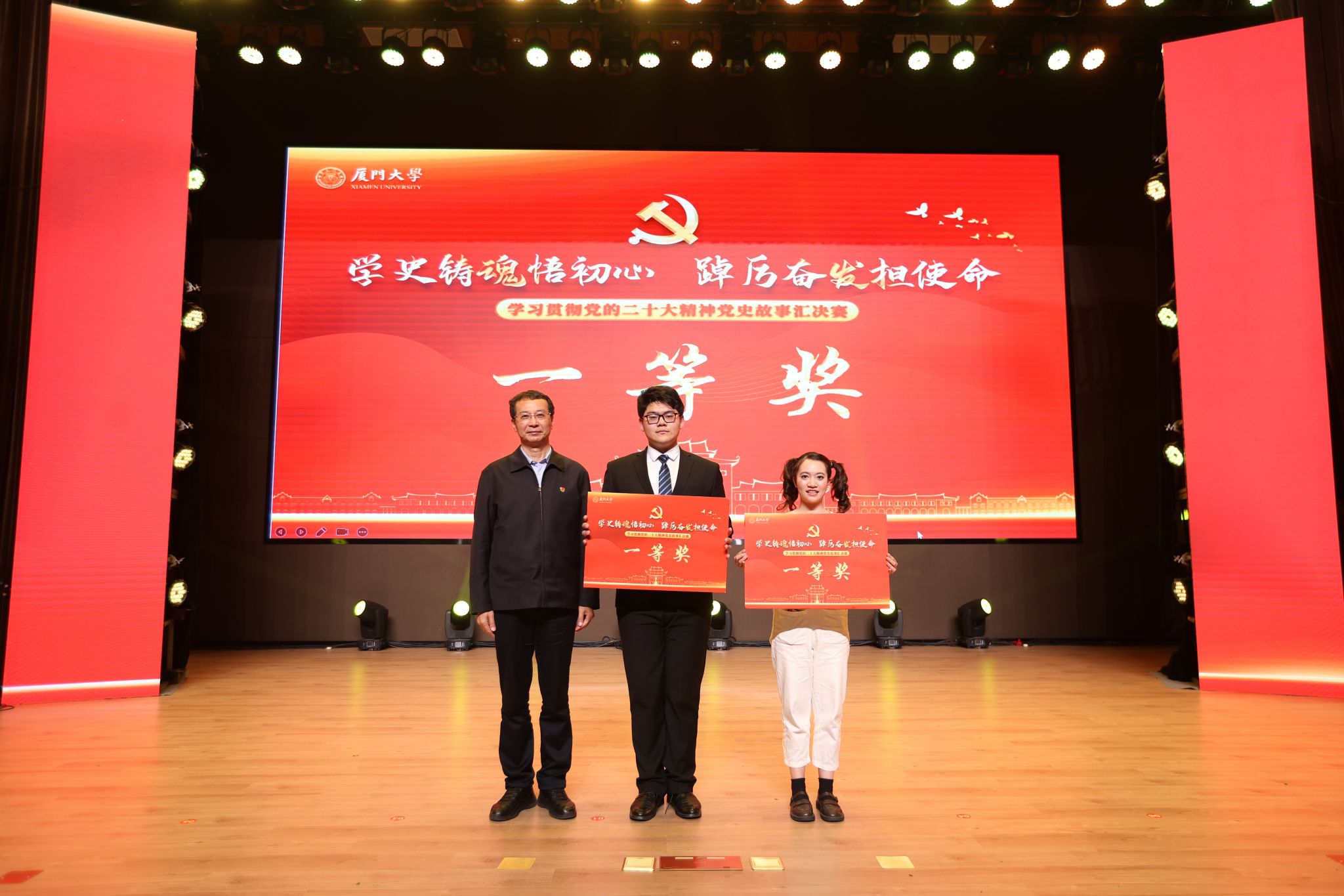 3月26日下午,厦门大学“学史铸魂悟初心 踔厉奋发担使命”学习贯彻党的二十大精神党史故事汇决赛在翔安校区西部片区3号楼报告厅隆重举行。校关工委常务副主任赖虹凯,厦门市委宣传部理论处处长王彦龙,校党委组织部/党建办、宣传部、学生工作部、翔安校区管委会等单位的负责同志,各学院党委副书记、辅导员和学生们汇聚一堂、共飨盛宴。最终,我院选送的节目《不变的抉择》以第一的成绩获得大赛一等奖,同时我院还获得优秀组织奖。