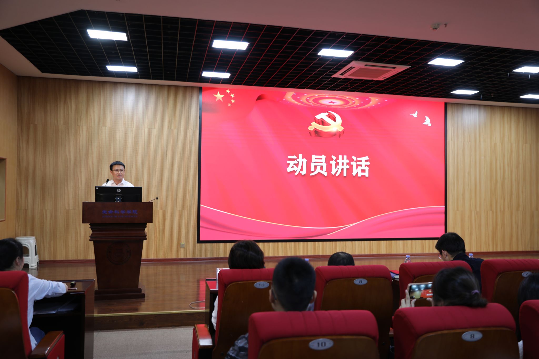 4月19日上午,生命科学学院学习贯彻习近平新时代中国特色社会主义思想主题教育动员会议在黄朝阳楼五楼学术报告厅召开。学校第七巡回指导组副组长、厦门大学学生工作部(处)副部(处)长、翔安校区学生办主任高斌到会指导。学院处级党员领导干部、党委委员、纪委委员及师生党员代表参加了会议。会议由学院党委书记马进龙主持。