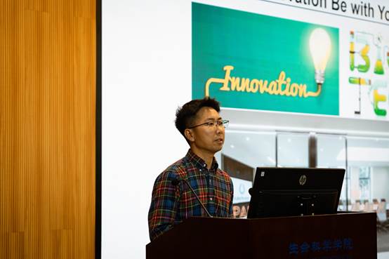 随后,特邀嘉宾何南海博士进行学术报告。何南海博士是我院98级院友,他表示十分荣幸能够回到母校做学术报告。他分享了阿诺医药在肿瘤免疫治疗药物研发领域的勤恳耕耘及突破创新的经营理念,并以癌症领域热门研究靶点之一为例讲述了阿诺医药近年来在癌症治疗方面的重大成果。