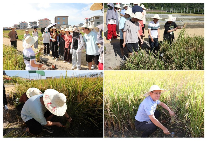 老师们介绍道:当下是一年中最热的时候,也往往是从事育种工作的师生们在田间最忙的时候。基地一般6月杂交、7月收种、8月插秧,此时要做田间收获、室内筛选整理、晚稻播种等工作。此后几日也将和时间赛跑,争取在台风、雨水到来前完成各项工作。