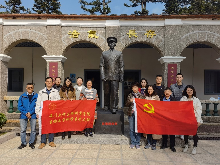 随后,“双带头人”示范班成员来到了位于厦门市翔安区彭厝村的彭德清纪念室,通过介绍员讲解,视频观看及文物参观。了解了彭德清同志革命的一生、战斗的一生、全心全意为人民服务的一生、追求真理、现身共产主义事业的一生。成员们驻足于彭德清将军的家训前“莫悔今生艰苦奋斗,严于律己自力更生,做一个对国家有用的人”前心潮澎湃。生物医学科学系党支部书记吴乔表示:“缅怀了革命先辈的光辉足迹,学习了红色革命精神,希望我们也能做到处顺境而不骄矜,处逆境而不消沉,处困境而思奋进,在自己的岗位上发光发热,潜心科研,扎实教学,为国家贡献属于自己的一份力量。”生物学系党支部书记袁晶表示:“一代人有一代人的使命,一代人有一代人的担当,革命先辈为我们树立了光辉的榜样,我们要铭记革命前辈的事迹,传承红色基因,发挥专业优势,践行使命担当,走好新时代的新征程”。