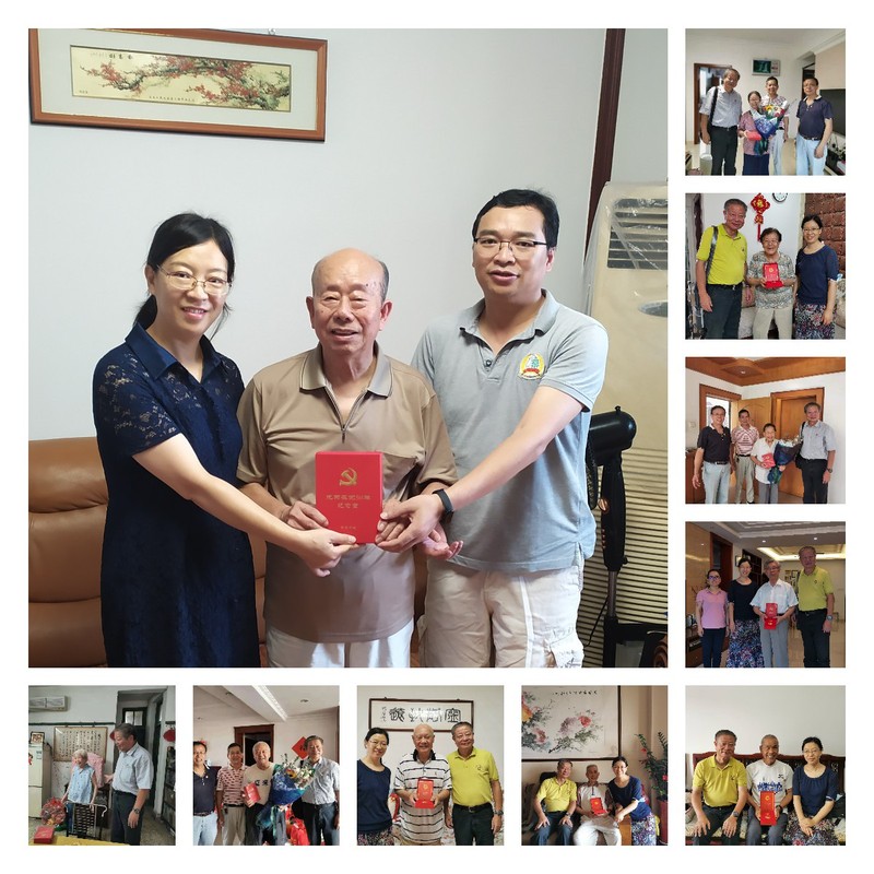 另外,学院党委通过上门慰问走访的方式为不能到现场的老党员颁发纪念章。在老同志家中,院领导带去学院的关心问候,详细询问他们的家庭情况、健康状况以及生活中存在的困难,希望老党员在保重身体的同时,继续关心和支持学院发展,同心同德筹办生物学科百年庆典。截至6月30日,学院全部颁发完13枚“光荣在党50年”纪念章。