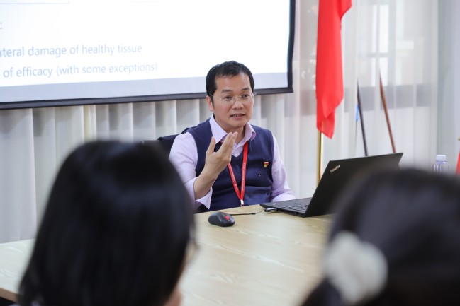 邓贤明教授不仅从生物科学的知识方面入手,讲授了肿瘤治疗从广谱到靶向的发展历程、抗体偶连药物中大小分子结合的原理,还结合知名制药企业的成就与优秀校友的实例,为同学们展现生物科学广大的应用前景。他提出,同学们应充分利用厦大优秀的科研平台,做好基础研究与转化的衔接,充分发挥主观能动性,实现自己的梦想。
